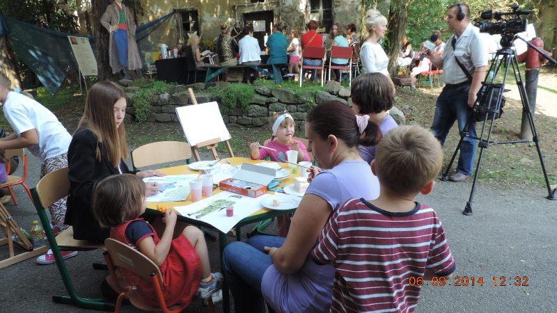 W plenerowej scenerii dzieci malowały współczesnego „Pana Wołodyjowskiego”, pod czujnym spojrzeniem artystki ludowej pani Romy Szczerbień, która przyjechała ze swoim warsztatem plastycznym z Krosnowic.