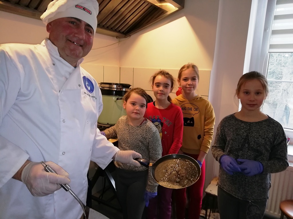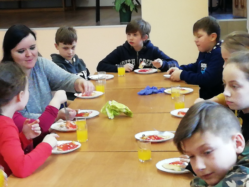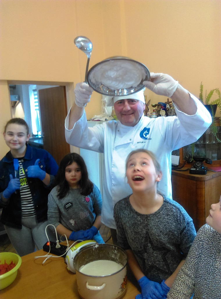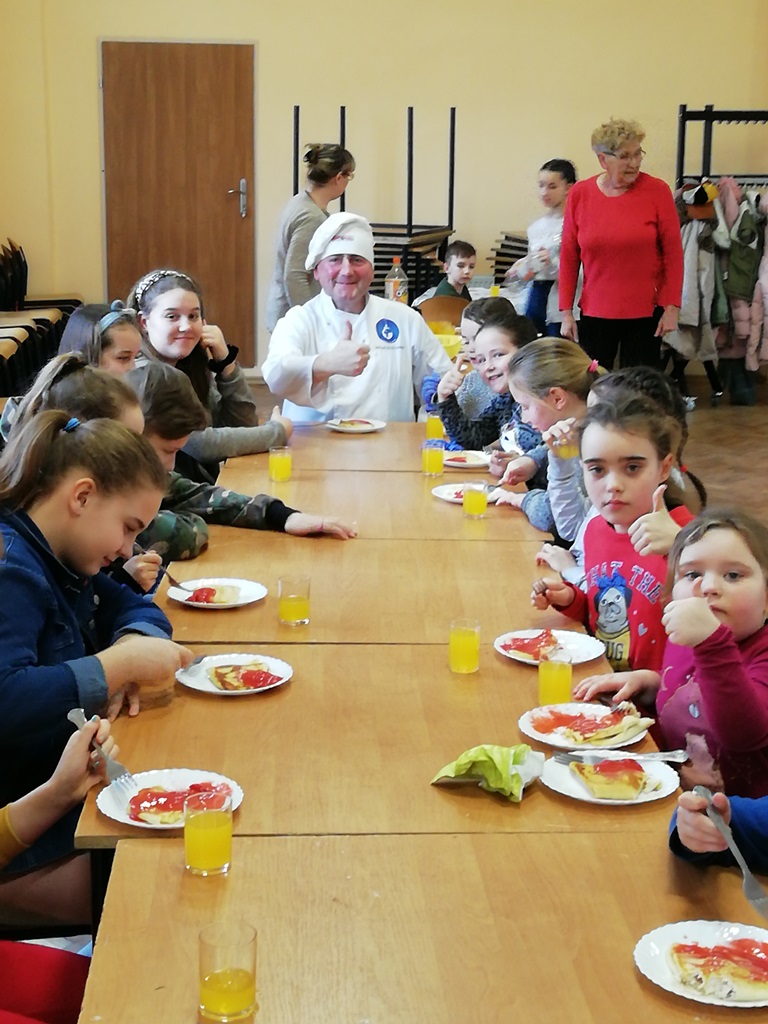 Za to, na mecie zameldowali się wszyscy, bez wyjątku. Jak to mówią, nie ważne są początki, ważne jest zakończenie. Za stołem było gwarno, smacznie i wesoło. Wszyscy zgłosili chęć udziału na kolejne zajęcia z kucharzem bez granic. Podsumowując, gdzie kucharek dziewiętnaście, tam jest zawsze coś do zjedzenia…