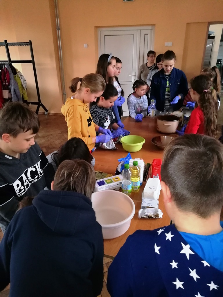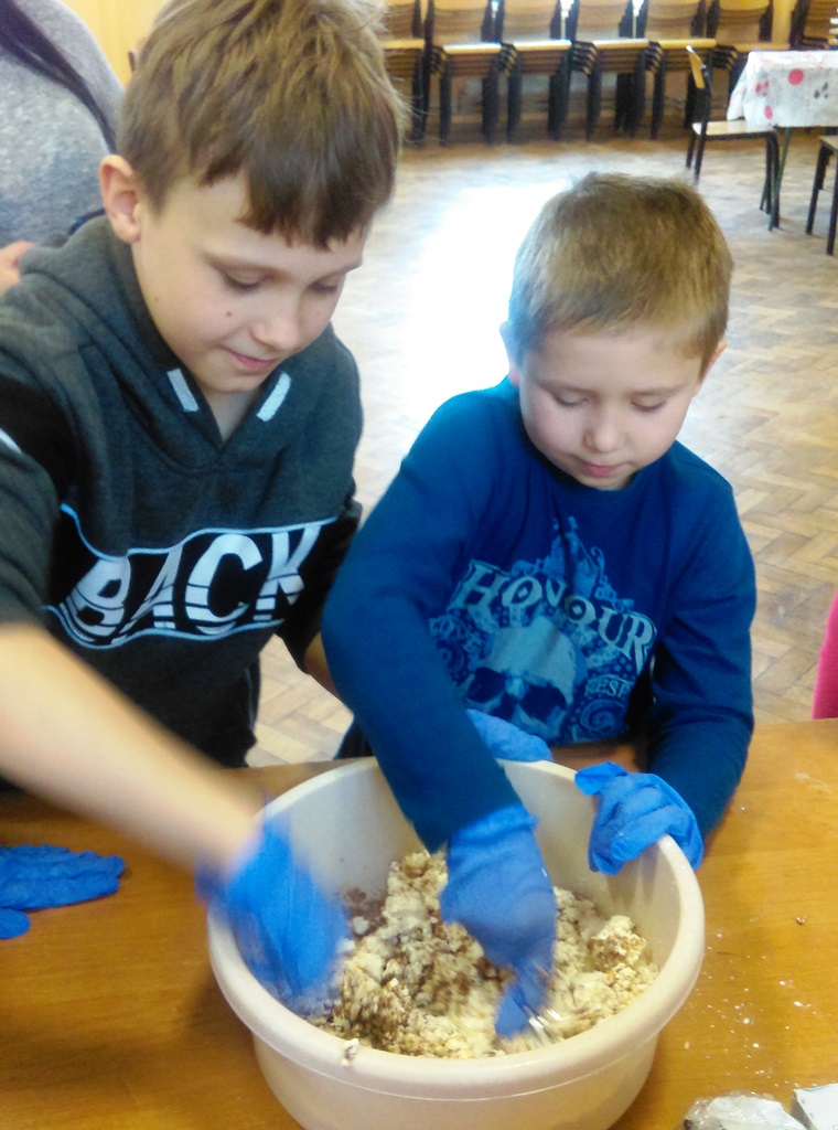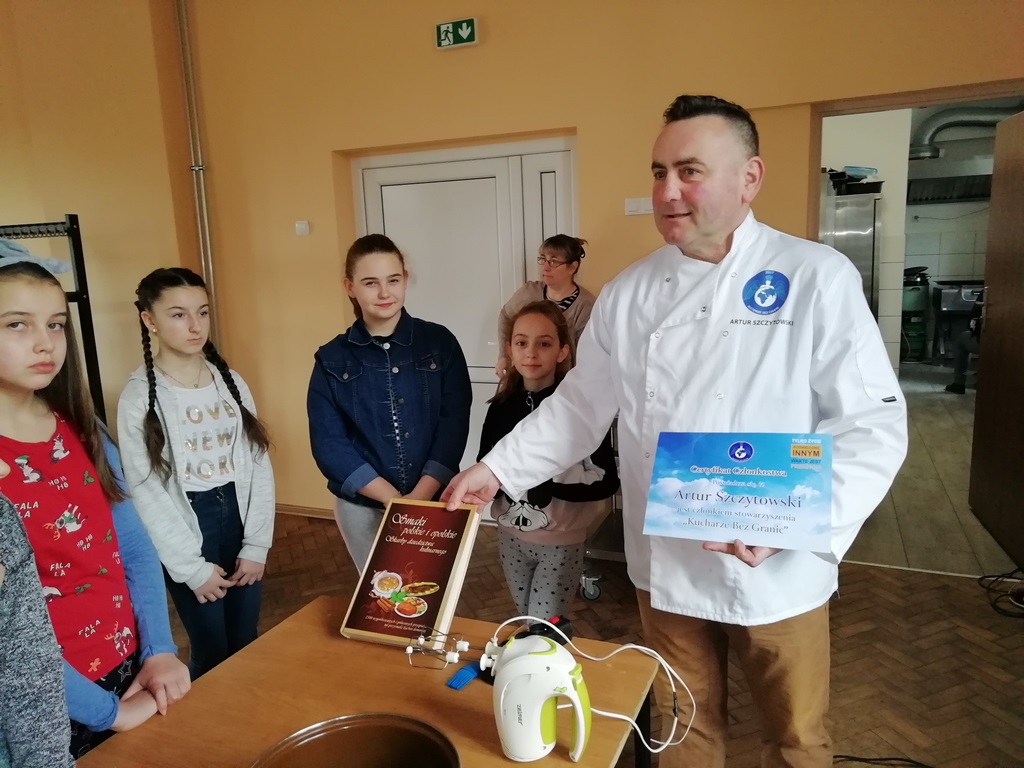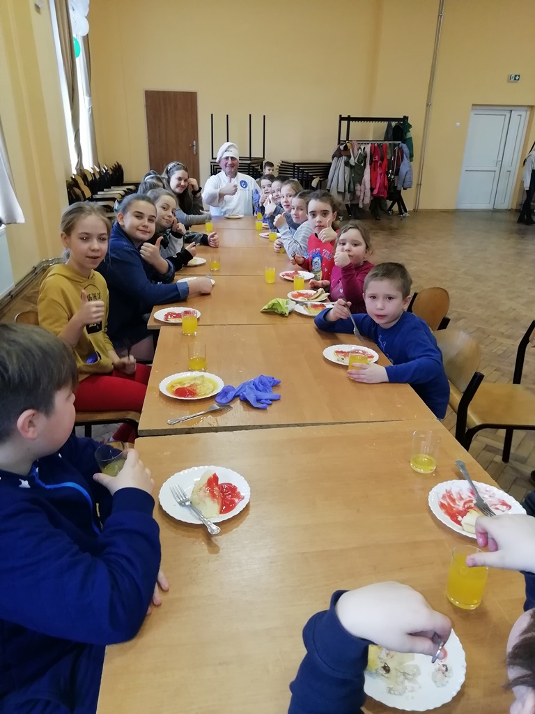 Za to, na mecie zameldowali się wszyscy, bez wyjątku. Jak to mówią, nie ważne są początki, ważne jest zakończenie. Za stołem było gwarno, smacznie i wesoło. Wszyscy zgłosili chęć udziału na kolejne zajęcia z kucharzem bez granic. Podsumowując, gdzie kucharek dziewiętnaście, tam jest zawsze coś do zjedzenia…