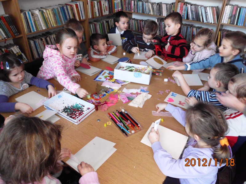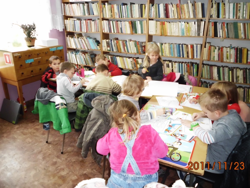P…sze pani, a Maciek mi zabiera klej… Na zakończenie wszystkie dzieci z ogromną dumą prezentowały swoje dzieła sztuki i zapowiedziały kolejną wizytę w kolorowej bibliotece Małgorzaty Saczywko.