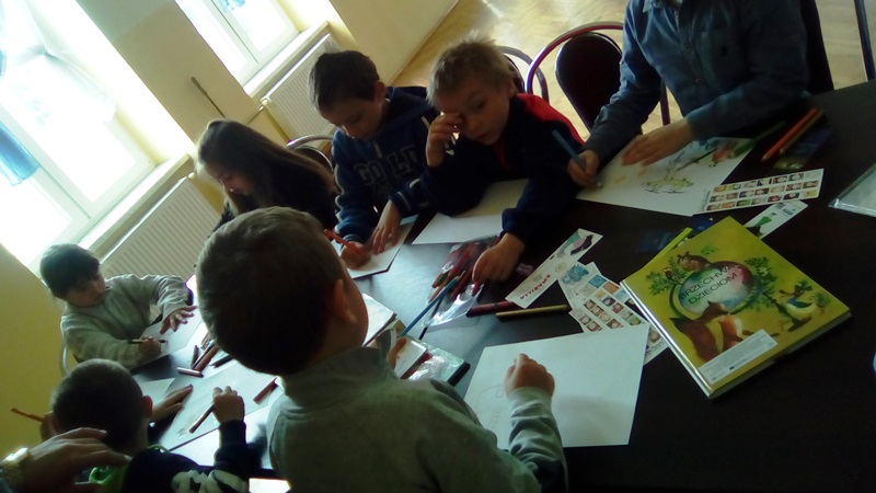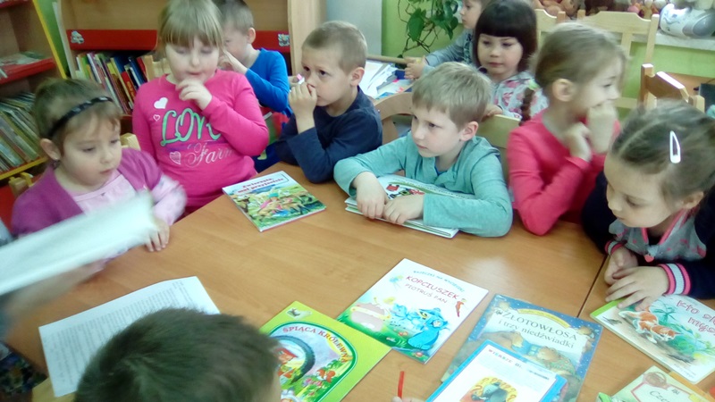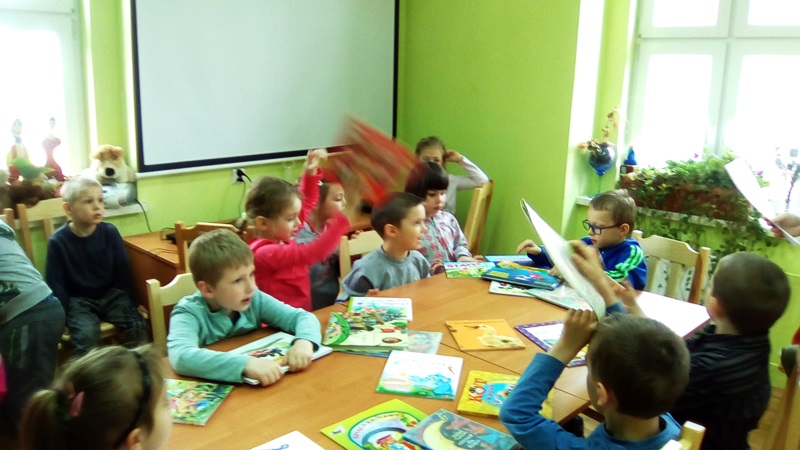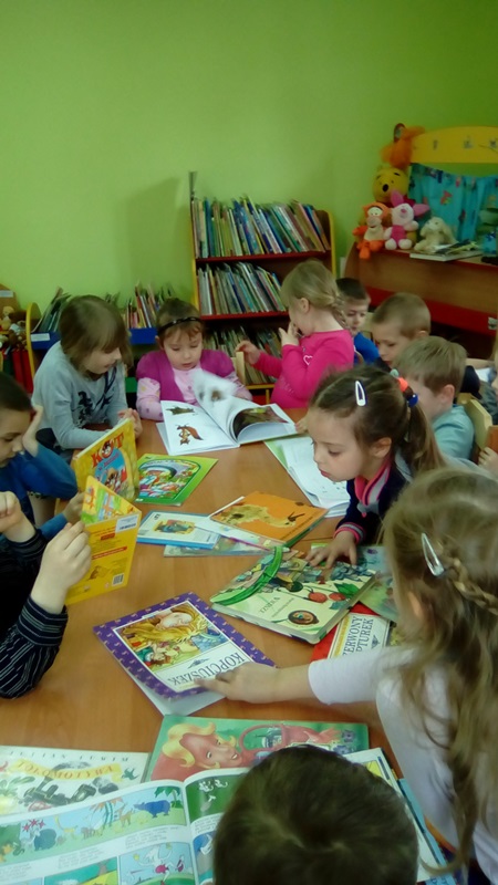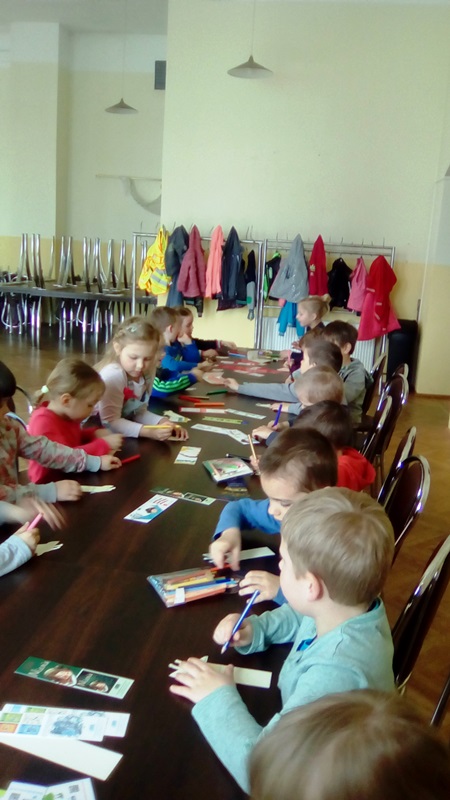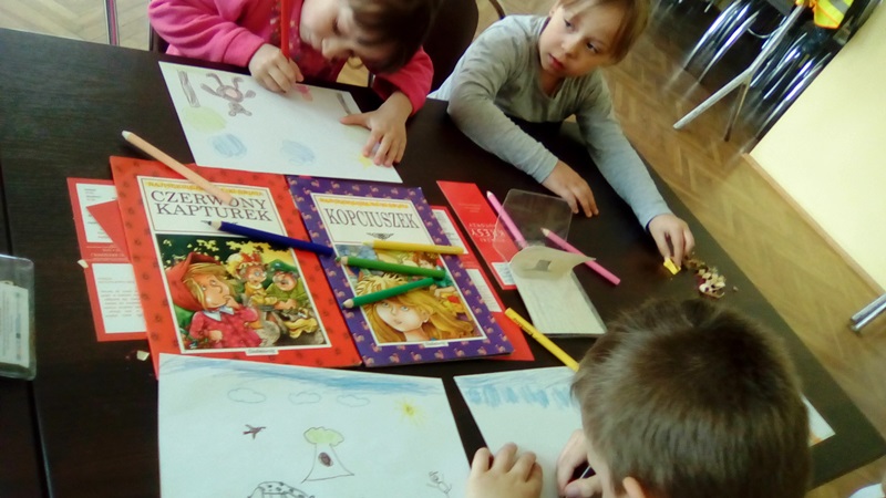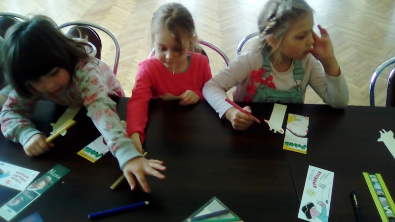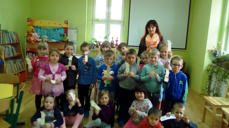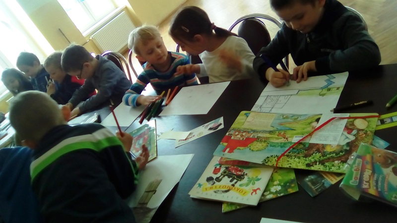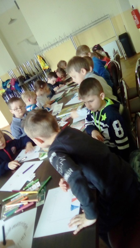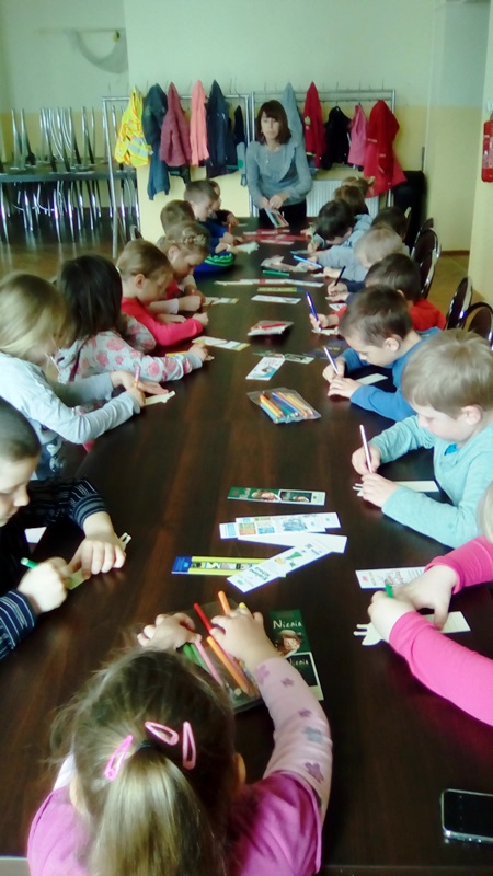 Aktywności najmłodszych użytkowników nie brakowało, o czym świadczą wykonane samodzielnie zakładki do książek oraz rysunki ulubionego bohatera bajkowego. Pani Monika otrzymała wspaniałe podziękowanie, bo lekcja biblioteczna była twórcza, a jej uczestnicy wrócą do biblioteki po książki, wiedzę i nowe doświadczenia.