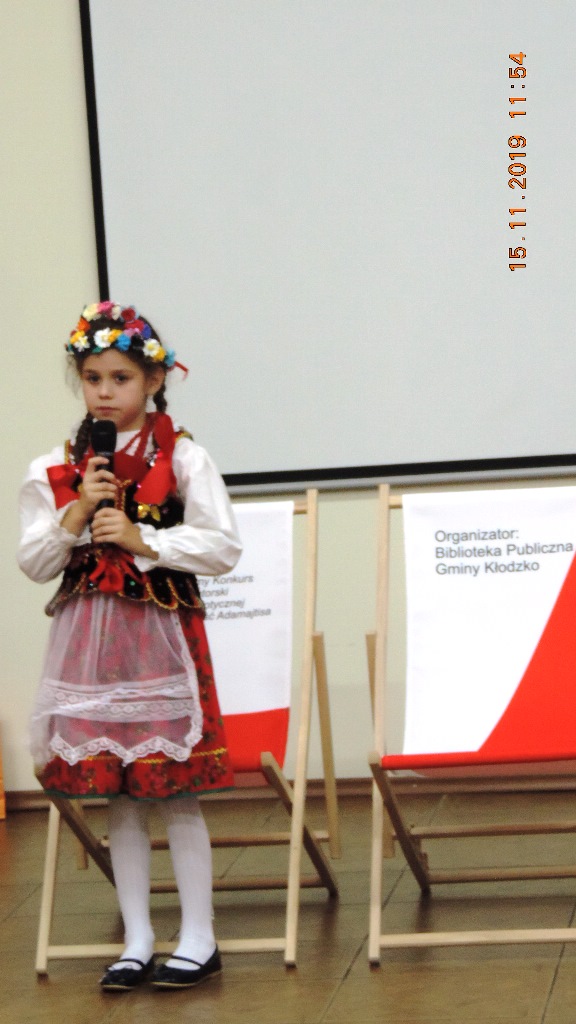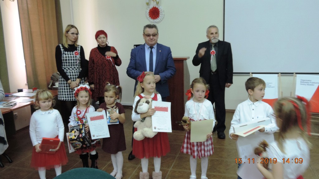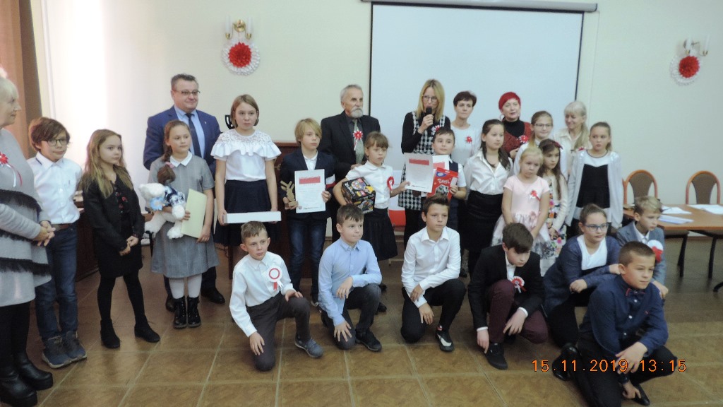 Adam Zajączkowski z Niepublicznej Szkoły Podstawowej w Żelaźnie za „11 listopada” Anny Paszkiewicz i Gabriela Porochnawiec za „Ziemia rodzinna” Władysława Bełzy