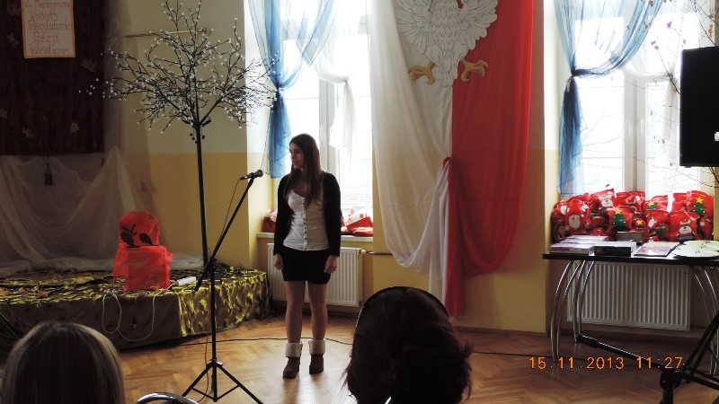 1 miejsce Klaudia Smoleń z Gimnazjum Reymonta w Kłodzku – główna laureatka statuetki Listopadowego Liścia Adamajtisa 2013