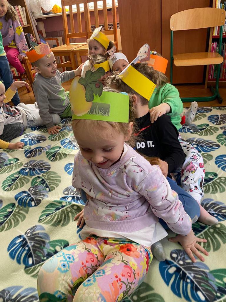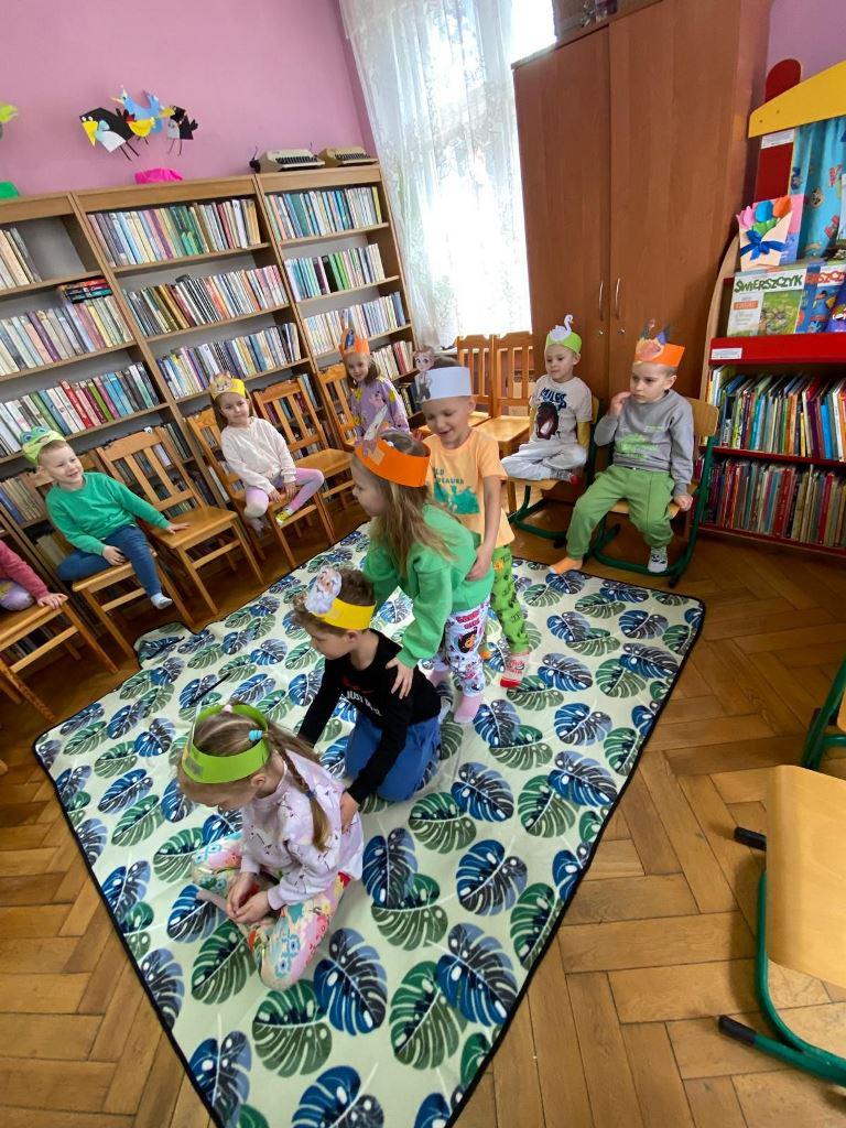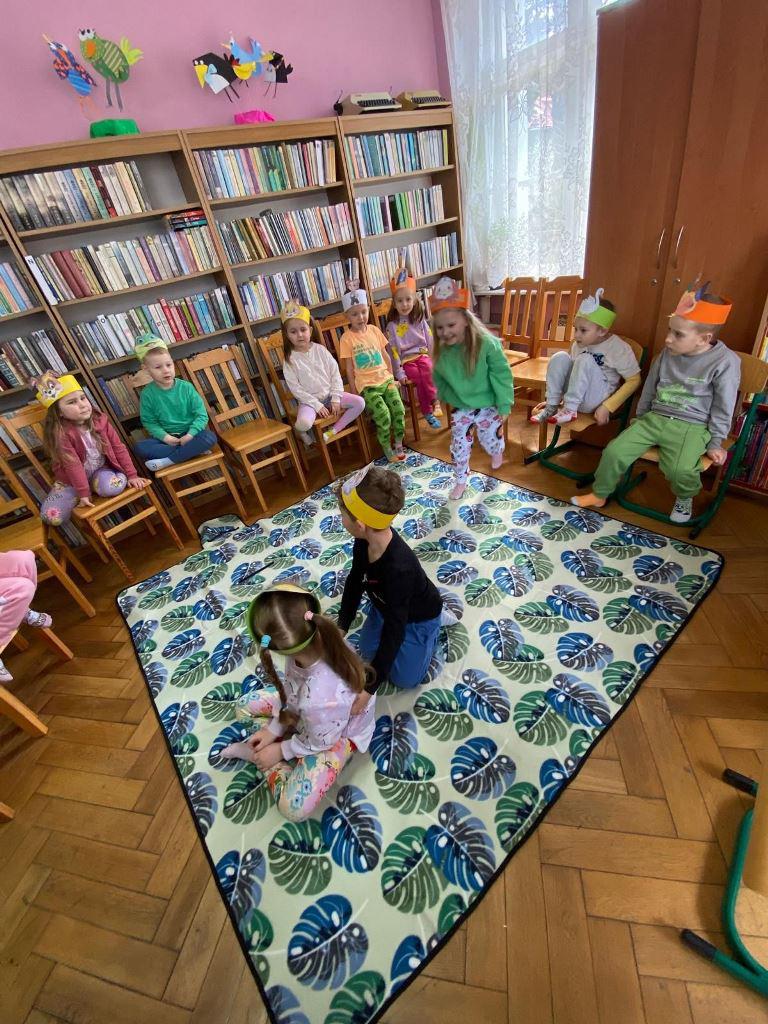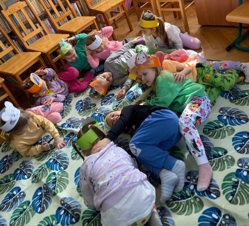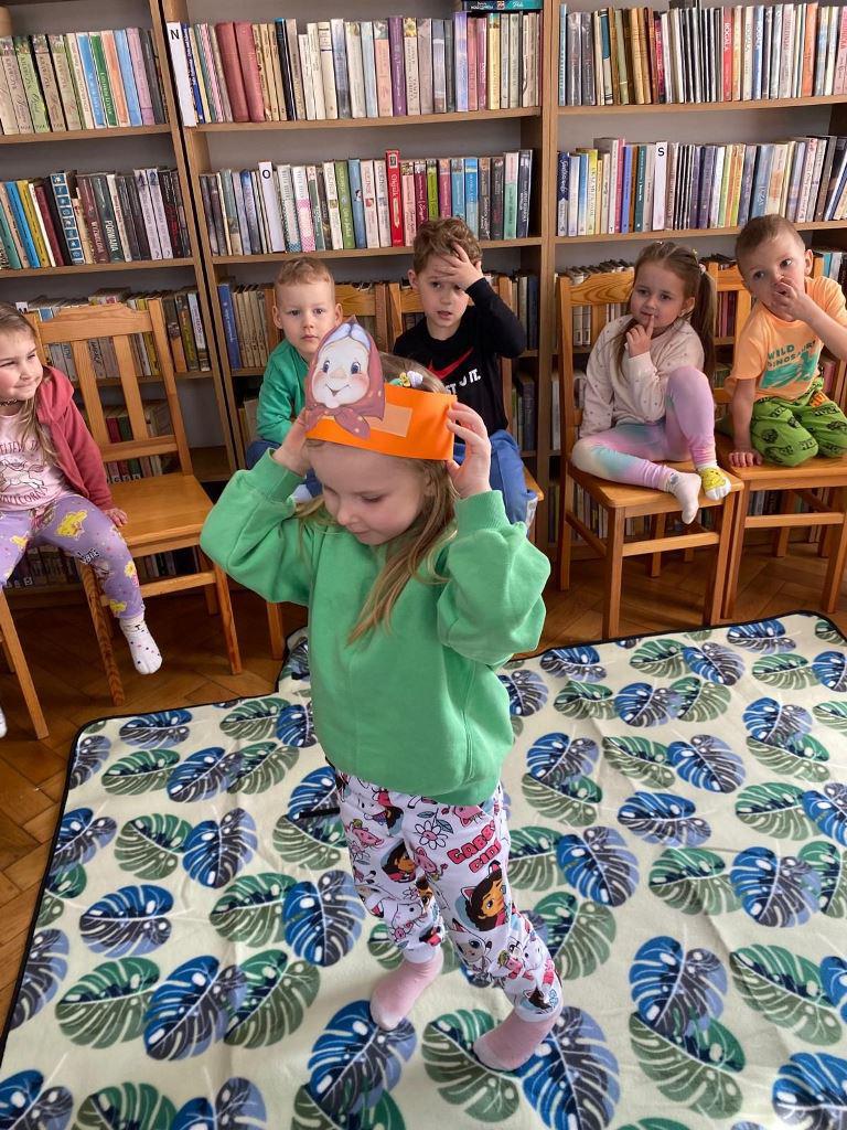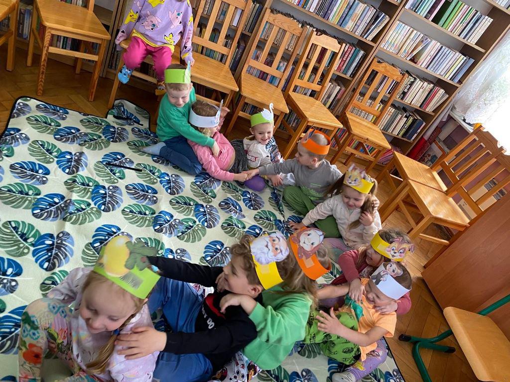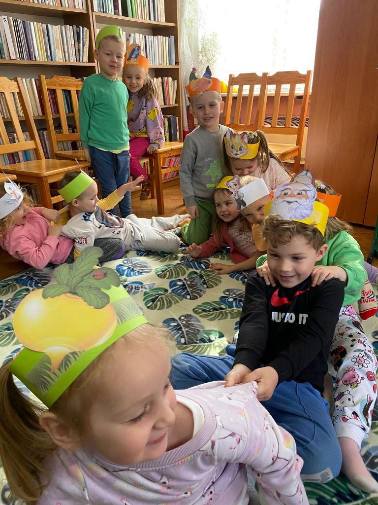 Spotkanie rozpoczęło się od kultowego wiersza "Rzepka", który od pokoleń zachwyca dzieci i dorosłych humorem oraz rytmicznym językiem. Wspólne czytanie zamieniło się w dynamiczną zabawę, w której każdy uczestnik przyjął rolę bohaterów utworu – dziadka, babci, wnuczka, psa Mruczka, kici, kurki, gąski, bociana, żabki i kawki. Dzięki specjalnie przygotowanym czapkom-opaskom dzieci mogły jeszcze mocniej wczuć się w swoje role, ucząc się przy tym współpracy i wytrwałości.