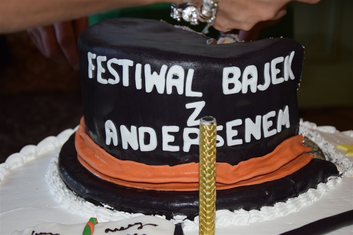 Dzieci otrzymały również wspaniały prezent od Przedsiębiorstwa Piekarsko-Cukierniczego Machela w Jaszkowej Dolnej, czyli okolicznościowy tort, który w tym roku przybrał formę cylindra pana Andersena. Smakowało, jak „niebo w gębie”. Dziękujemy!!!
