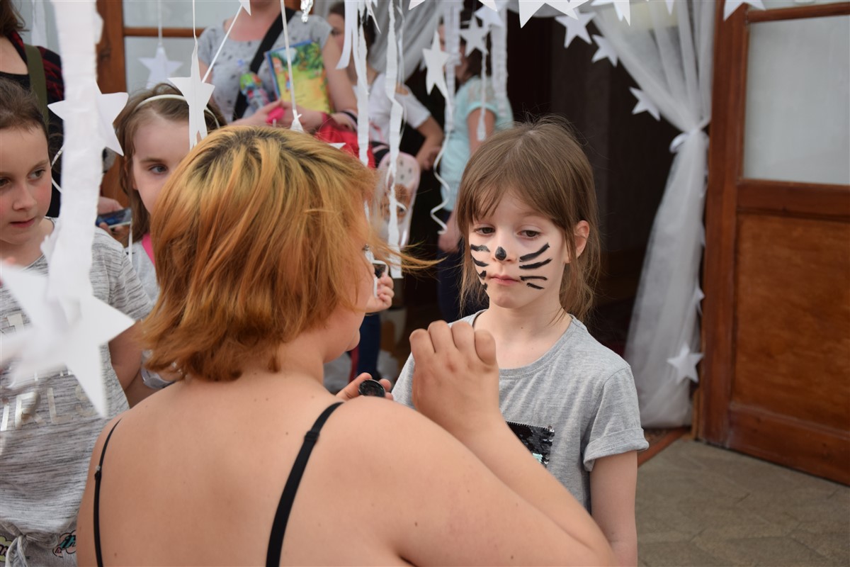 Podczas tego wydarzenia, rok rocznie gościmy pisarzy dziecięcych. W tym roku była to pani Agnieszka Urbańska, która poprowadziła autorskie warsztaty detektywistyczne. Sprawą kluczową było opracowanie intrygi, czyli wymyślenie zagadki, którą zajął się świetny detektyw, odnoszący sukcesy zawodowe. Żeby było ciekawiej, cała ta sensacyjna afera czy kryminalna historia (w wariancie dziecięcym) rozegrała się w Żelaźnie. Użyto więc kilka wiejskich zdjęć, z wioskową Basztą rycerską, Bramą pałacową, Mostem żelaznym. Kreatywnie dało się skorzystać z postaci jednej z Czarownic z Wapniarki. I tak, któregoś dnia malutka, sympatyczna jejmość zniknęła w tajemniczych okolicznościach? W biały dzień… Przy wielu świadkach, którzy jednak na ten temat nie potrafią powiedzieć czegoś konkretnego… Więcej już opowiedzą dzieci, które wzięły udział w zabawie.