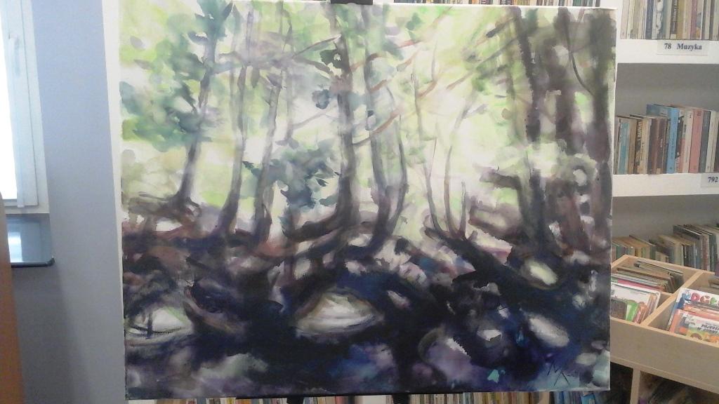 Właśnie w tej placówce, w pierwszej dekadzie lipca br. M. Kociumbas udostępniła wystawę swoich prac nawiązujących do książki przyrodniczej niemieckiego leśnika i pisarza Petera Wohllebena "Sekretne życie drzew". Dzięki jej "przetworzeniu" opisów dokonanych przez autora można zobaczyć jak ci przedstawiciele flory odnajdują się podczas czterech pór roku. Ta gra kolorów, kameralność, zróżnicowanie sytuacyjne są najlepszym oddaniem tego, co autor miał na myśli...