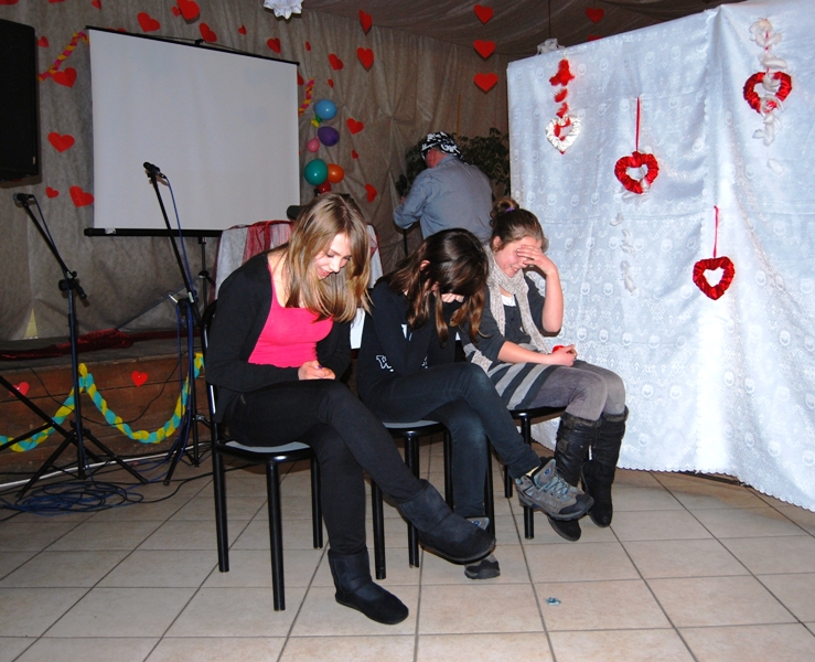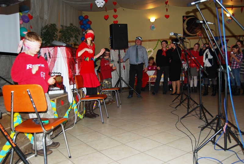 Pomiędzy tym szaleństwem dzieciaki bawiły się w sercowe puzzle, spinacze, zrzucanie pieniążków i deptanie balonów - pod dyrygenturą bibliotekarzy. Wielkim talentem wykazała się biblioteczna grupa artystyczna z Wojborza w programie walentynkowym, opartym na twórczości Edwarda Stachury i w reżyserii Małgorzaty Kłonowskiej. „Powiedz mi, co byś chciała? Cuda ja czynię. Mała! Martwe zamieniam w żywe, zgasłe w płonącą grzywę. Powiedz mi, co byś chciała? Jeśli chcesz jeszcze więcej, wezmę cię na ręce: W góry uniosę dzikie. Zaprzęg latawców skrzyknę.”…