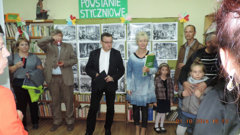 Na to szczególne popołudnie w Domu Ludowym przygotowano wiele atrakcji i dla każdego znalazło się coś dobrego. W bibliotece wszystkich gości powitała pani dyrektor Mariola Huzar. Zaprosiła do obejrzenia okolicznościowej wystawy „150. Rocznica Powstania Styczniowego”, którą Biblioteka otrzymała z Ministerstwa Kultury i Dziedzictwa Narodowego. Autorem wystawy jest Narodowe Centrum Kultury, a eksponaty – ryciny pochodzą z kolekcji Krzysztofa Kura. Warto wybrać się do biblioteki, bo ryciny będą udostępnione tylko do końca października.