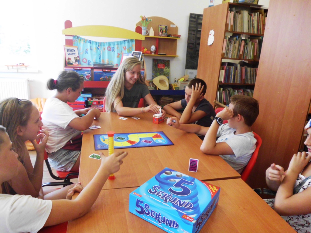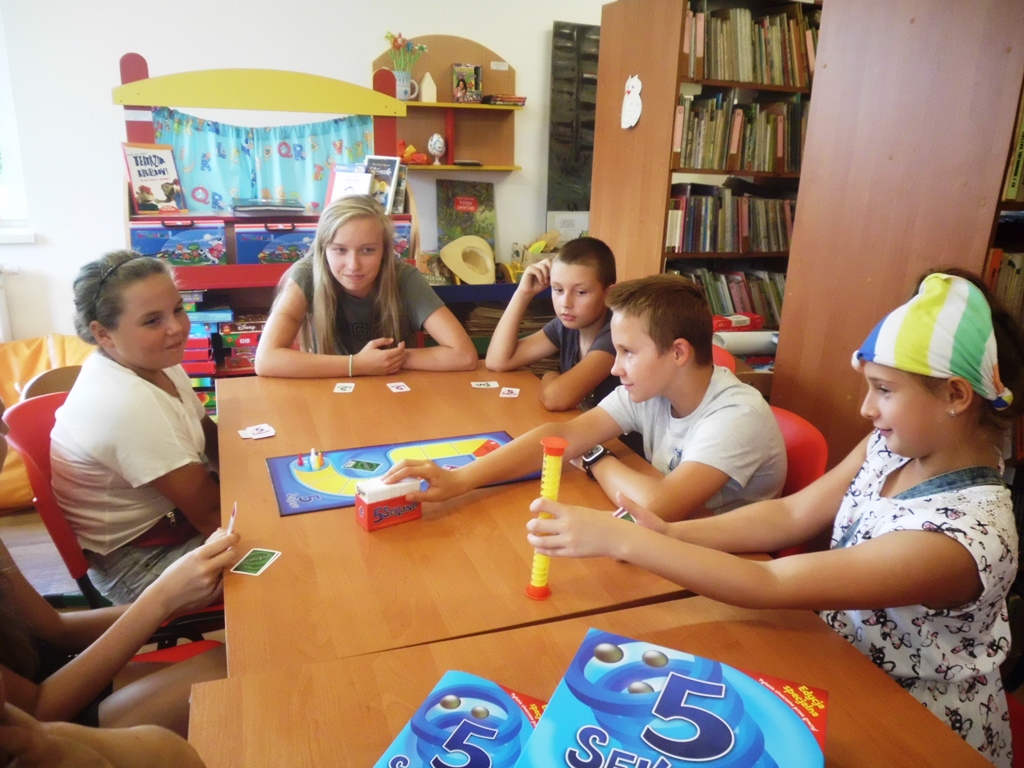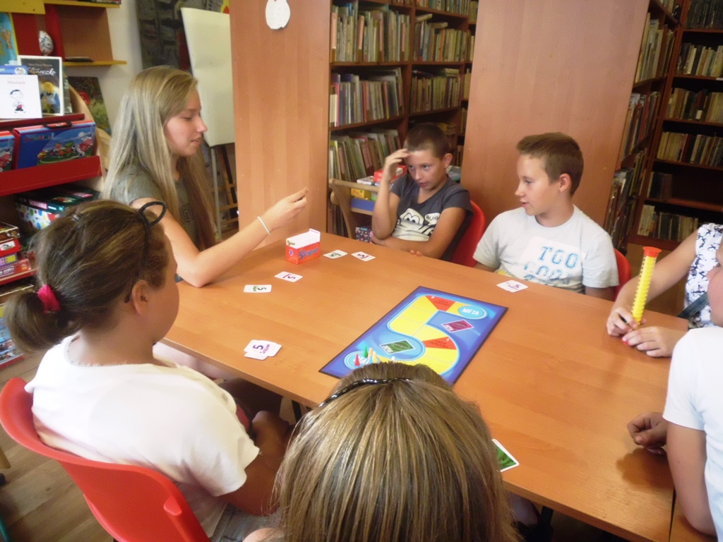 Pani bibliotekarka Ewa zaprasza na turnieje z planszówkami. W ostatnią środę, młodzi czytelnicy zmierzyli się z wyzwaniami Eurobiznesu. Potem zagrali w 5 sekund, gdzie trzeba było wykazać się szybkim myśleniem i odpowiadaniem na pytania o różnym stopniu trudności. Dla przykładu: wymień 3 znane mosty, podaj imiona i nazwiska 3 siatkarzy…