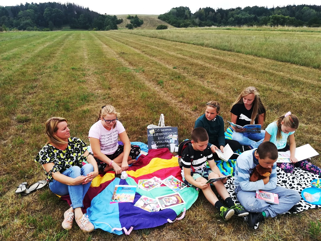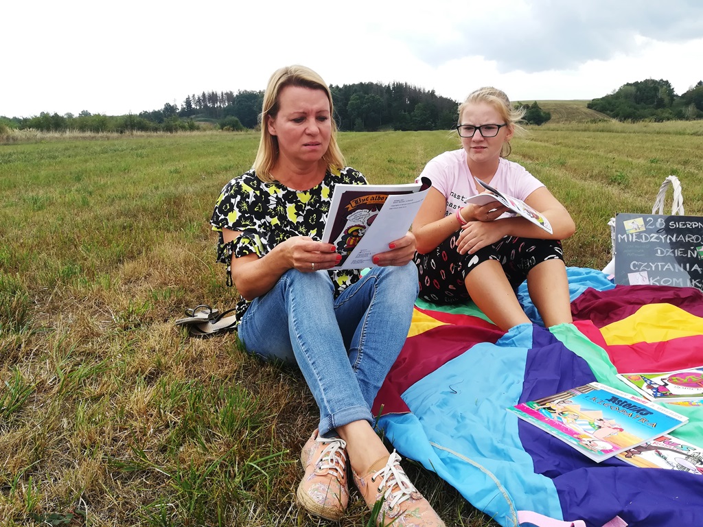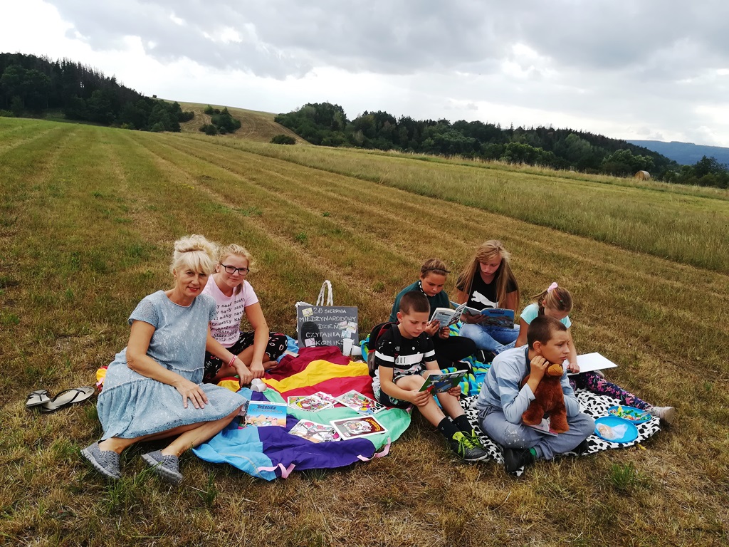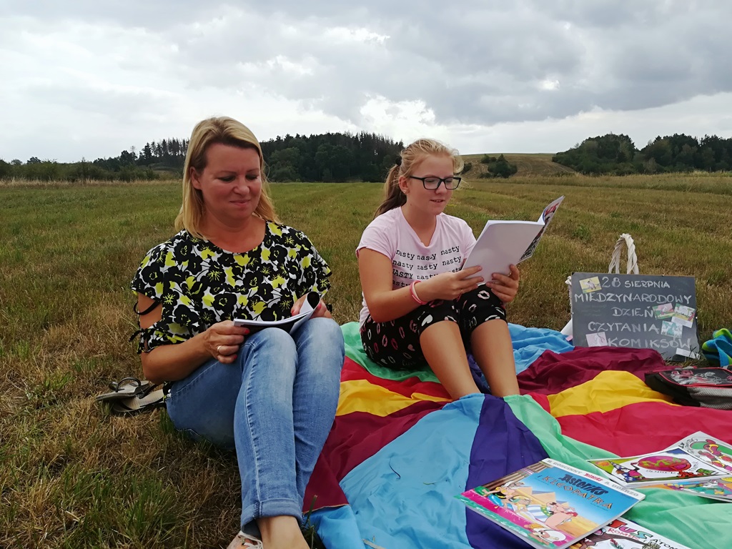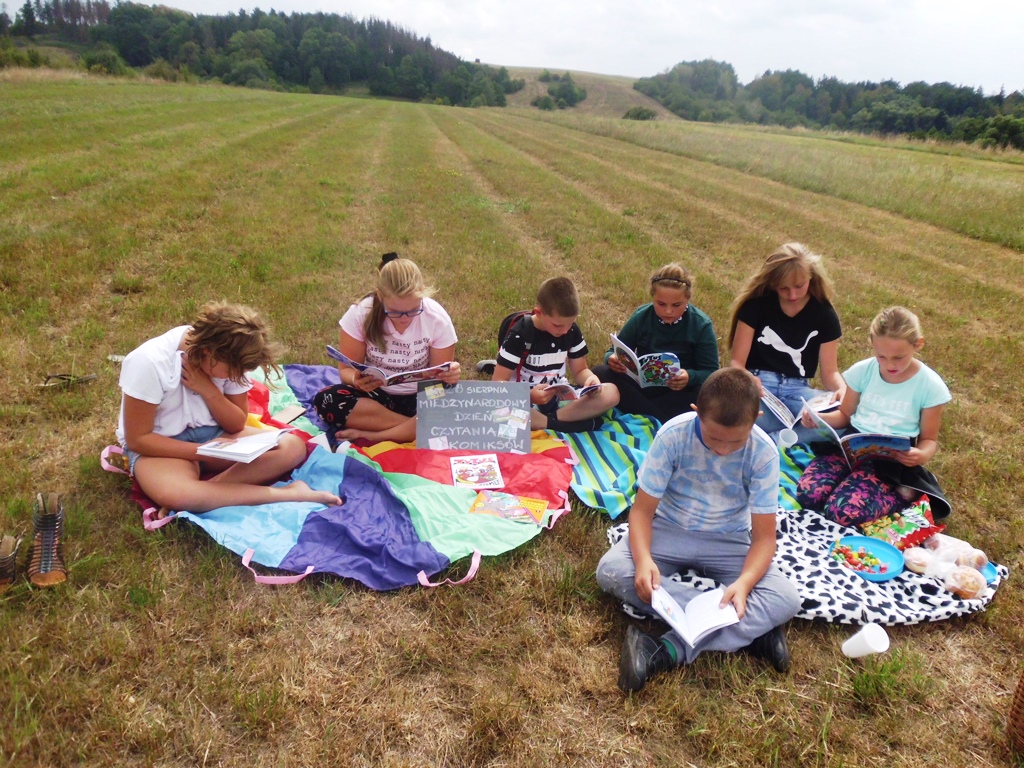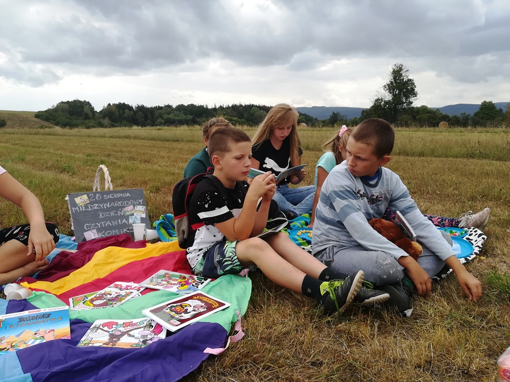 Ten dzień nie był obojętnym dla Filii Biblioteki Publicznej Gminy Kłodzko w Starym Wielisławiu. Dzieci w różnym wieku wraz z panią bibliotekarką Ewą czytały komiksy na placu zabaw w centrum wsi oraz na łące pod lasem… Niespodzianką był przyjazd pani Marioli Huzar, dyrektora sieci bibliotecznej.