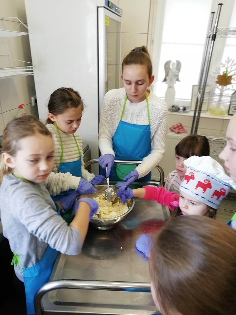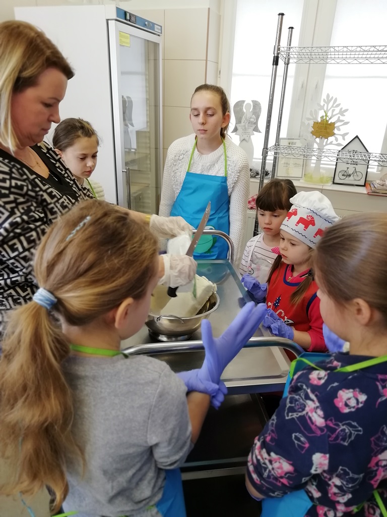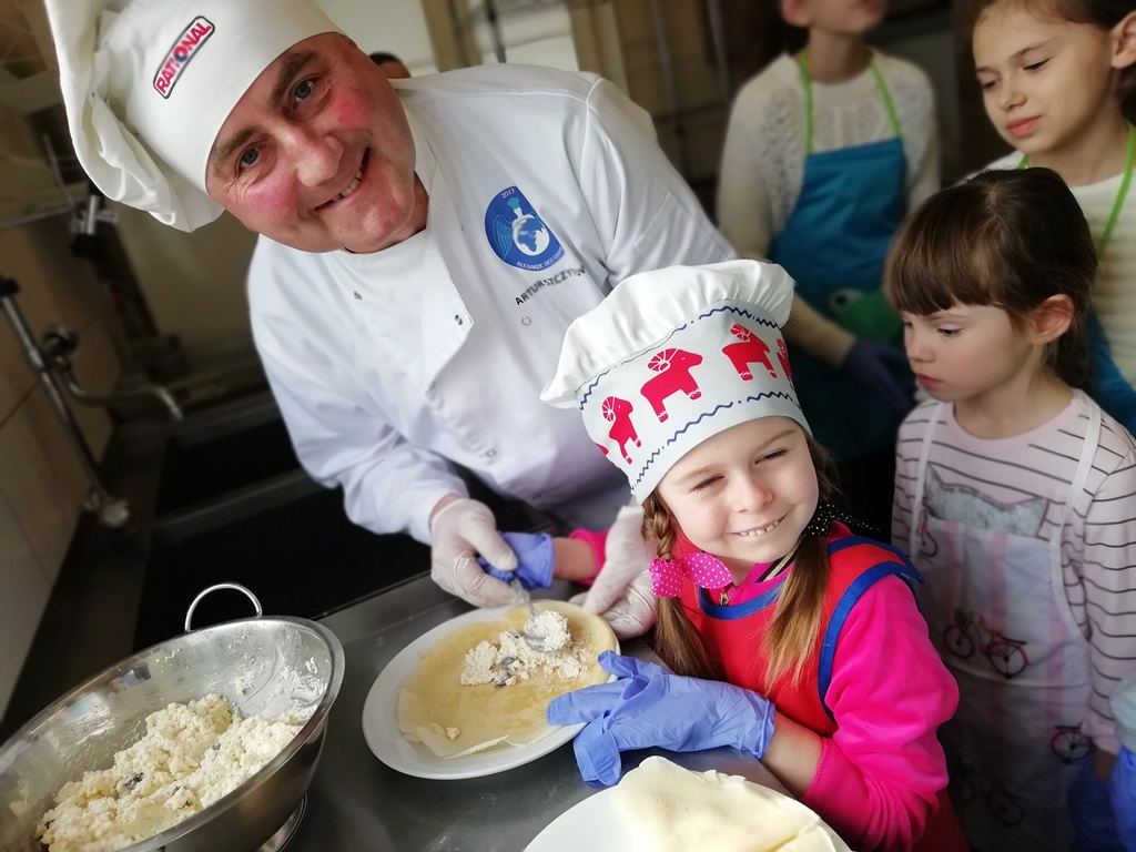 Samodzielnie przygotowanie farszu serowego z dodatkiem rodzynek, cukru waniliowego, cynamonu i żółtek było bardzo smaczne. Natomiast rodzice z ogromną ciekawością podglądali swoje pociechy, bo przecież gotowanie od najmłodszych lat może skończyć się w kuchni MasterChefa, czego wszystkim życzymy.