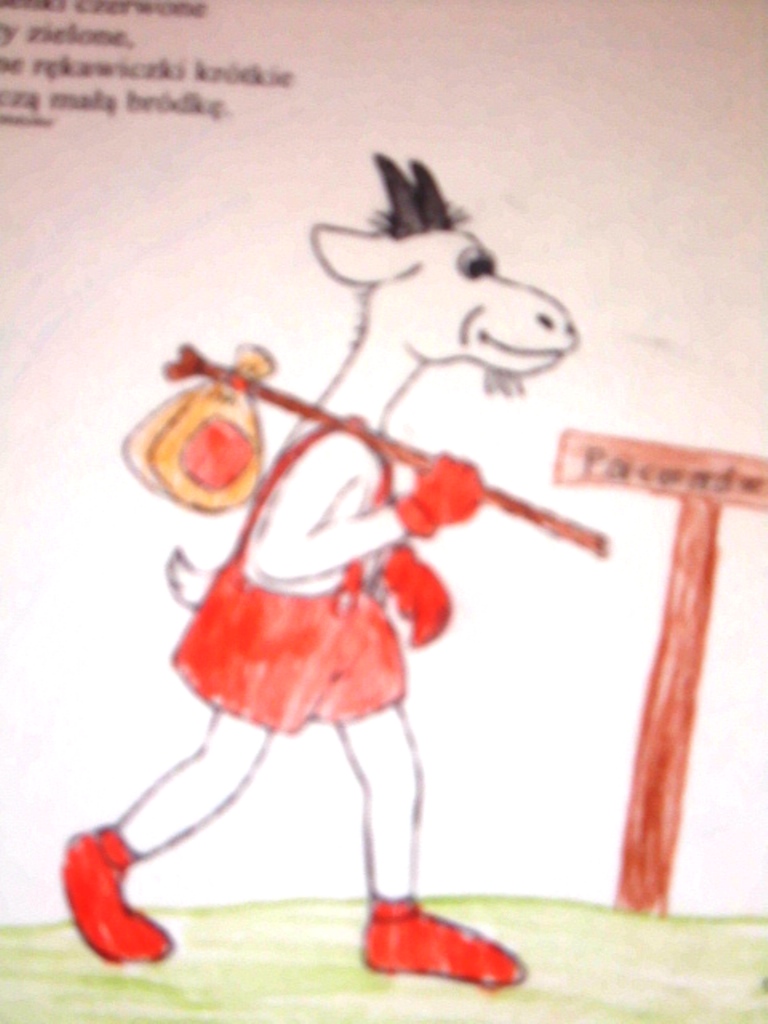 ….Idąc do Pacanowa spotkał wiewiórkę. Trafił do lasu, gdzie musiał uciekać przed wilkiem. Potem spotkał przebiegłego węża. Wsiadł do rakiety, ale zamiast do Pacanowa poleciał na planetę Jowisz. Tam spotkał byka, który widząc czerwone spodenki zaatakował go. Biedny Koziołek odleciał znowu na Ziemię i spotkał niedźwiedzia. Ten wysłał go na księżyc. Na księżycu spotkał ufoludka, który z kolei kazał mu wracać na swoją planetę. Jak widać, przygody były niesamowite. Tekst i rysunki również. Biedny koziołek nadal szuka Pacanowa.