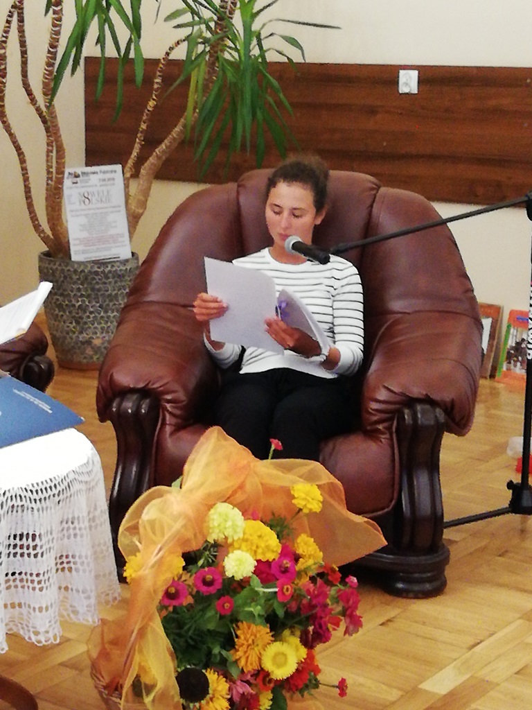 Bibliotekarką Małgorzatą Kłonowską z Wojborza, która wraz z Oskarem Szymkowiakiem z Młodzieżowej Rady Gminy Kłodzko oraz Panią Anną Kutny z Krosnowic wspólnie przeczytali „Dobrą panią” Elizy Orzeszkowej