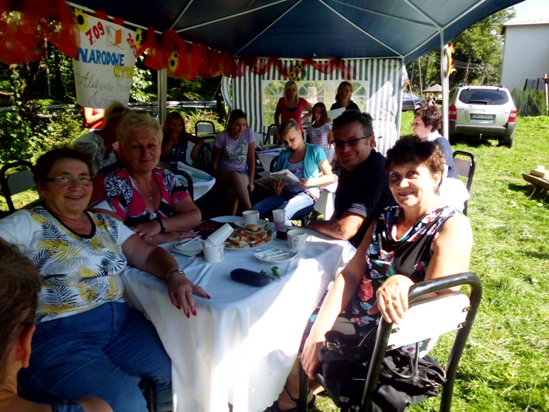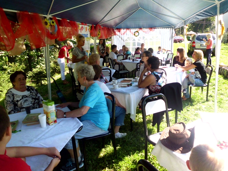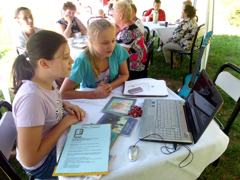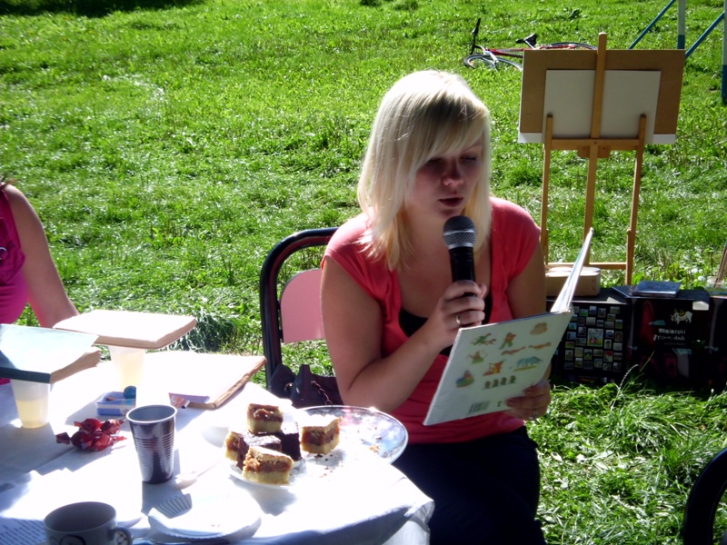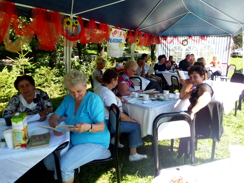 Przy zaangażowaniu bibliotekarzy Izabeli Muchy i Aliny Sydorko oraz stażystów Marty Walkowicz i Pawła Dżugaja udało się stworzyć kameralną atmosferę biblioteki plenerowej, gdzie z przyjemnością na finał skonsumowano przepyszny tort Pana Jowialskiego, wypieczony i podarowany przez KGW „Wojciechowiczanki”. Serdecznie dziękujemy!
