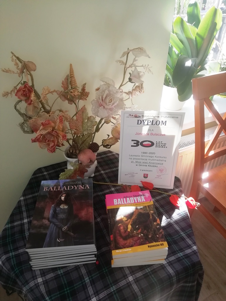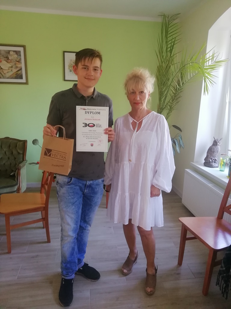 Narodowe czytanie było też okazją do wręczenia nagrody dla laureata konkursu Jonasza Bulaczek za prezentację multimedialną pod nazwą „Moja wieś Krosnowice”, który zorganizowała Biblioteka Publiczna z okazji 30 lat samorządności w Polsce.