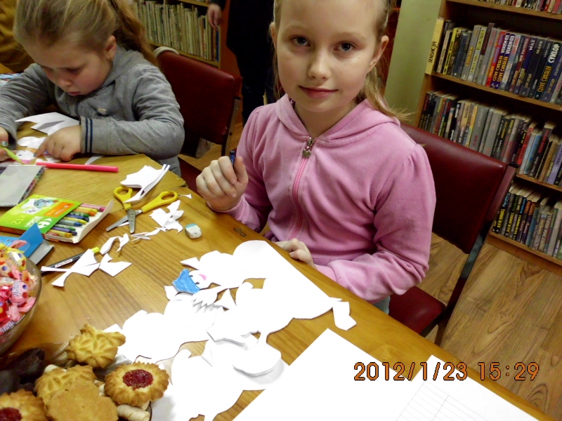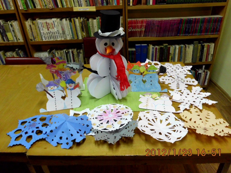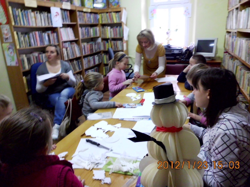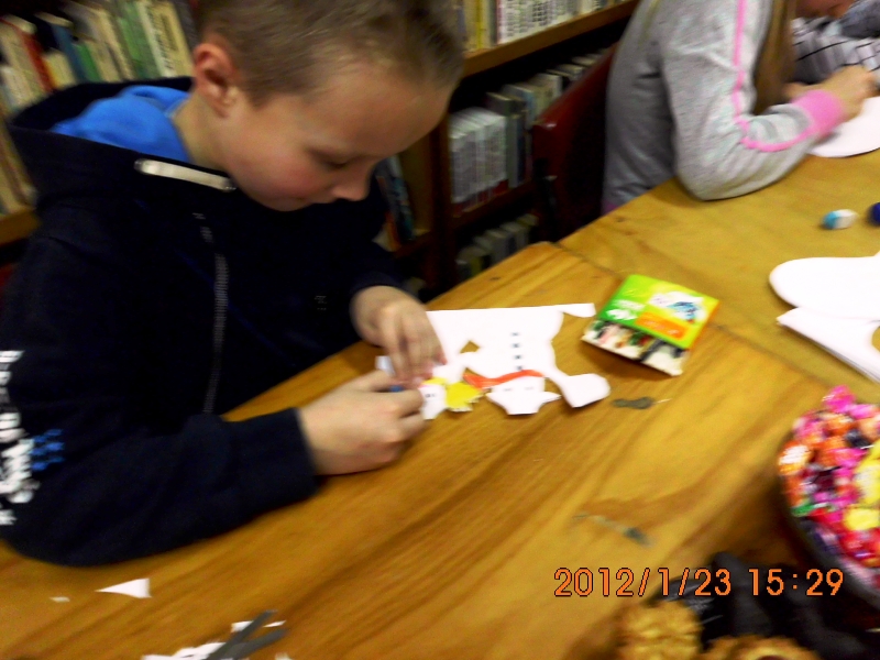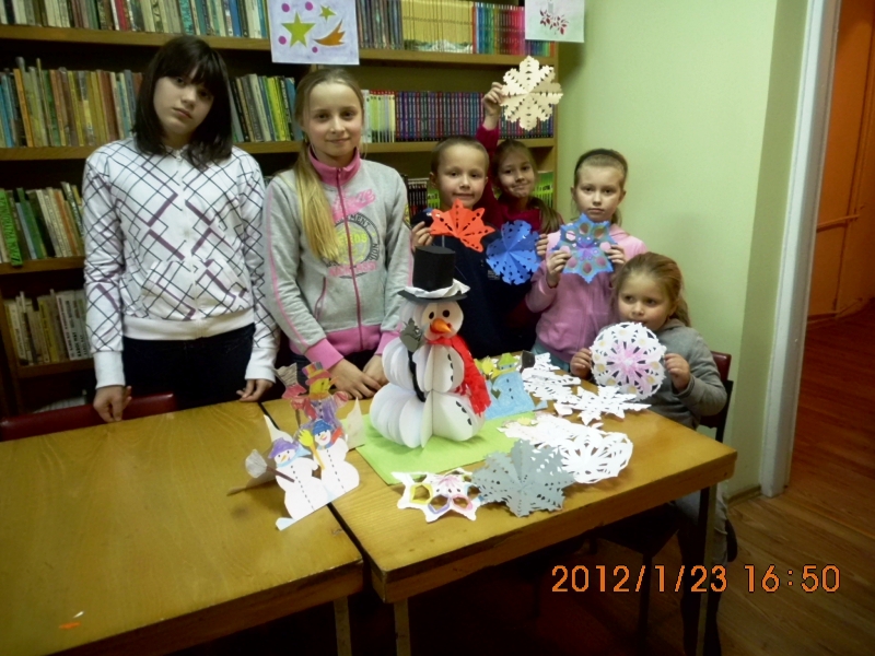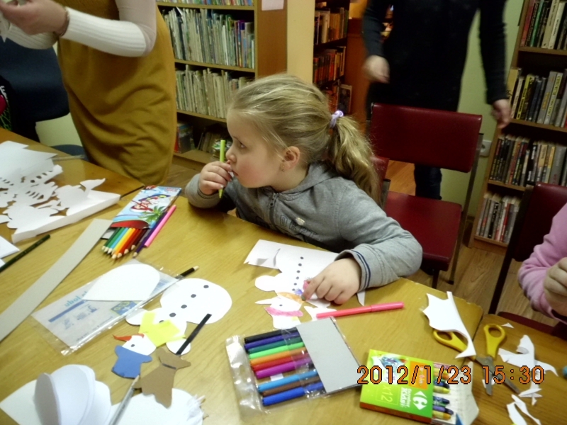 Młodsze dzieciaczki pracowały nad ozdobnymi serwetkami, śnieżynkami i prostszymi bałwankami. Jak się okazuje nasza zima zła, wcale nie jest taka zła – komentuje bibliotekarka Izabela Mucha.