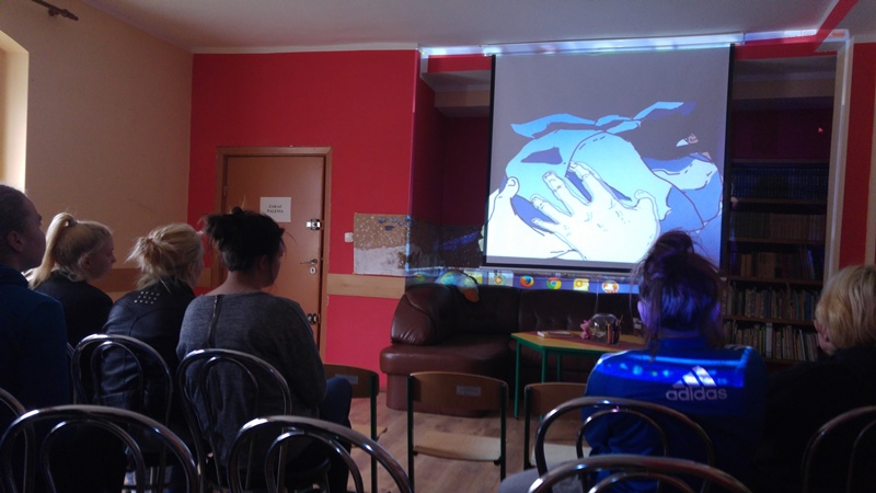 Po projekcji w bibliotece zapadła wymowna cisza. Aby uspokoić myśli i emocje, jedna z dziewcząt z Młodzieżowego Ośrodka Socjoterapii przeczytała wiersz Czesława Miłosza „Campo di Fiori”, który był podsumowaniem akcji Żonkile w bibliotece w Krosnowicach