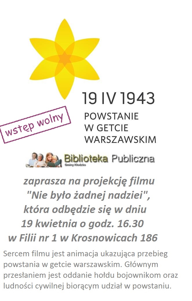 Z tej okazji, 19 kwietnia 2017 roku w Filii nr 1 w Krosnowicach odbyła się projekcja filmu „Nie było żadnej nadziei”, udostępniona przez Muzeum POLIN.
