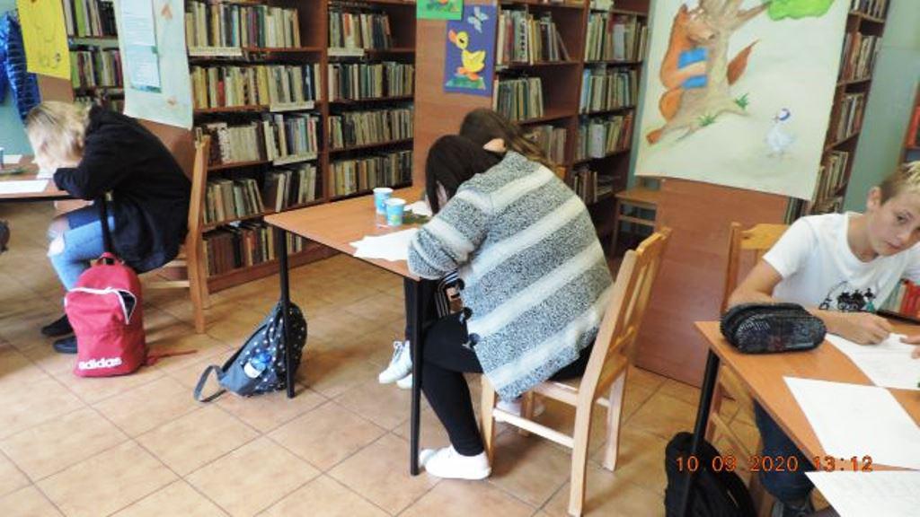 Młodzież z ciekawością weszła do biblioteki zajmując wyznaczone miejsca i nie wiedząc, co ich czeka i kto kogo będzie wpuszczał w maliny.