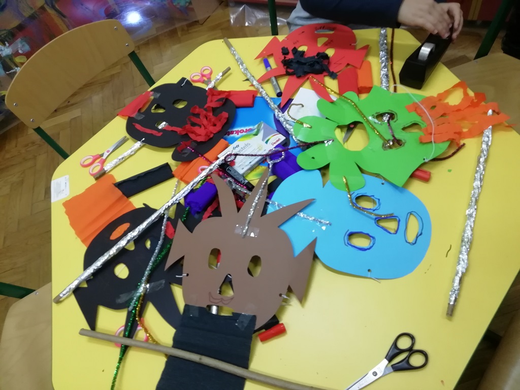 Szukaliśmy wspólnego języka na warsztatach plastycznych, aby przygotować maski i różdżki na zabawę ze stworami i potworami. W całym tym artystycznym zamieszaniu swoją zawieruchę zrobiły straszydła i…