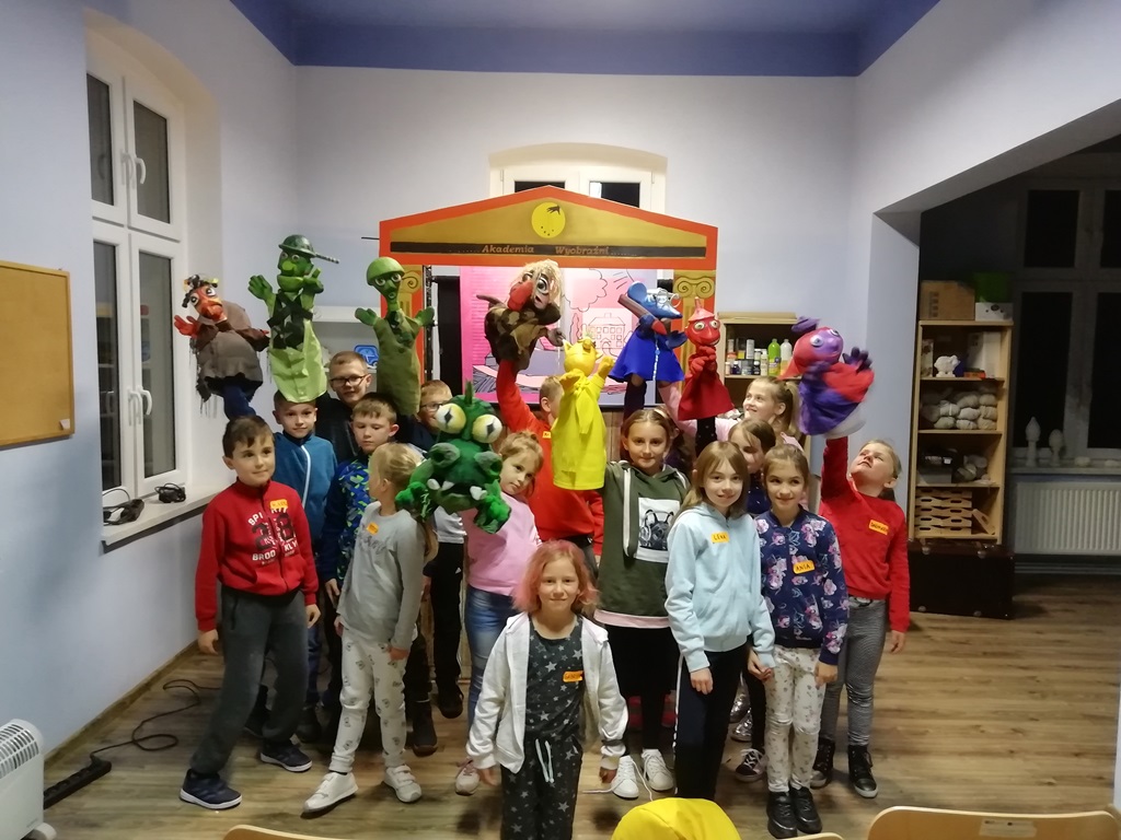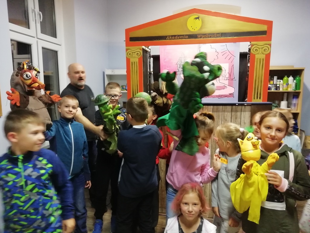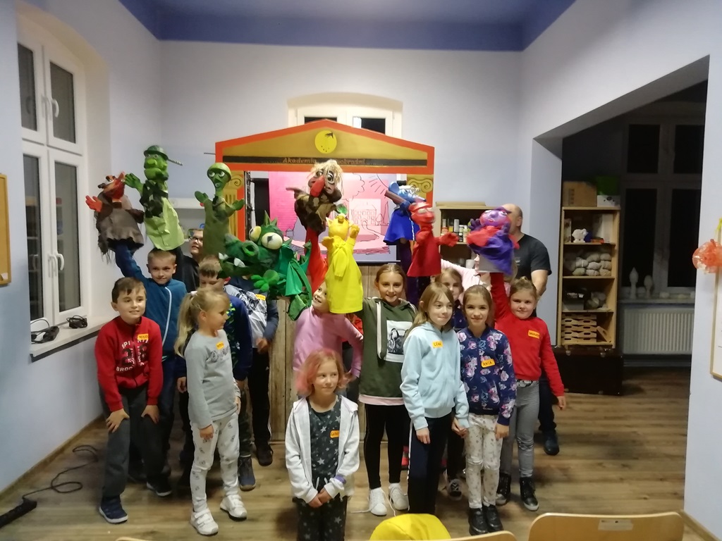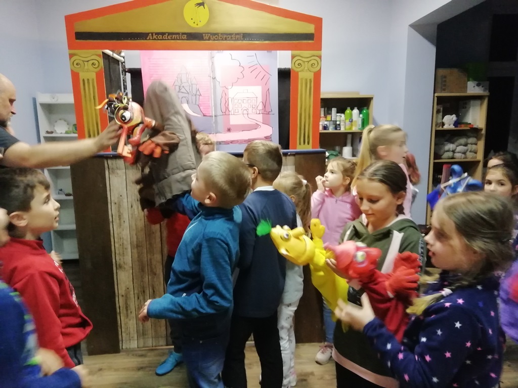 Udaliśmy się do najmniejszego teatru na świecie, czyli Akademii wyobraźni z Lądka Zdroju. Nastrojowa, wyciemniona i wyposażona w teatralne reflektory scena z kameralną widownią stworzyła niezwykły klimat dla przedstawienia lalkowego „O Ignasiu, który nie lubił szkoły”. Pełna emocjonujących przygód opowieść o chłopcu, który uciekł ze szkoły do świata swojej wyobraźni. Wędrówka okazuje się dobrą lekcją, która prowadzi naszego bohatera do ołdrzychowickiej biblioteki. Jedne dzieci lubią szkołę, inne wprost jej nie cierpią. Tytułowy bohater postanawia uciec ze szkoły wyruszając w pełną przygód wędrówkę. Wielkie emocje naszych dzieci, rozkręciły jeszcze więcej to widowisko. Na finał spektaklu nastąpiło radosne rozwiązanie wszystkich konfliktów i problemów Ignasia.