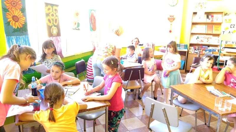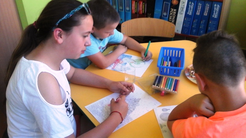 Dla czytelników przygotowano wiele ciekawych i pouczających atrakcji. Rozpoczęliśmy od nietypowej strefy artystycznej pod hasłem „Wyspy”, którą kierowała pani Roma Szczerbień. „Wyspy” to pełna tajemnic książka do kolorowania dla marzycieli w każdym wieku. Niezwykły czarno-biały archipelag ukryty w sercu Bardzo Spokojnego Oceanu doczekał się swoich odkrywców. – To była koronkowa praca, która zainspirowała mnie do tego, aby zostać wyspiarką, która jeszcze więcej spędza czasu w mojej bibliotece – stwierdziła kilkuletnia Ania.