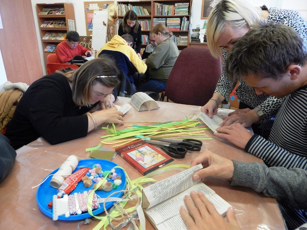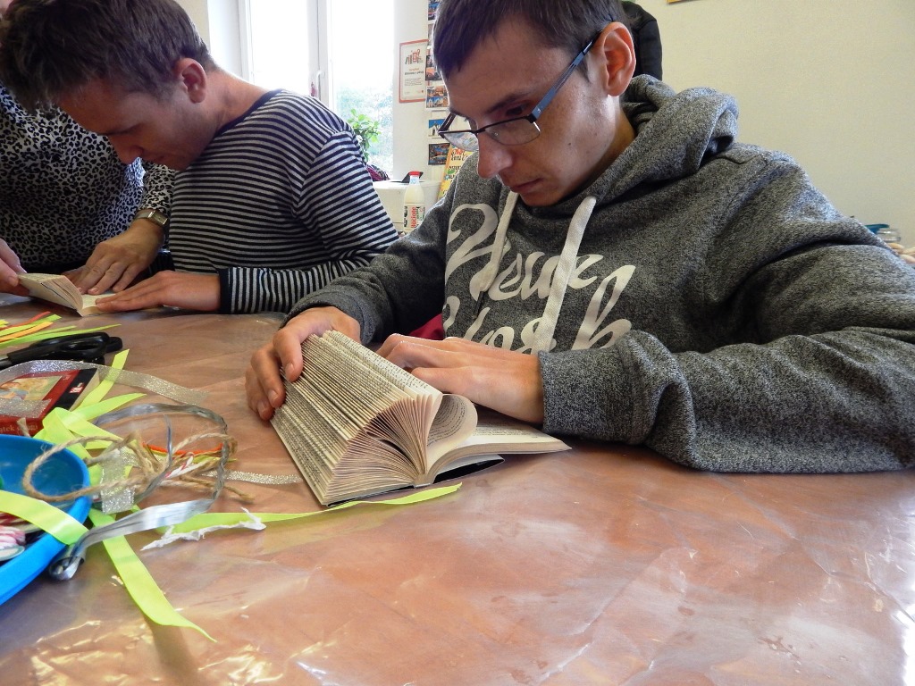 Starych, zniszczonych, nikomu niepotrzebnych książek nie wyrzucaj - można z nich zrobić prawdziwe dzieła sztuki! Przekonali się o tym uczestnicy miejscowych Warsztatów Terapii Zajęciowej, odwiedzając Filię Biblioteki Publicznej Gminy Kłodzko w Starym Wielisławiu.