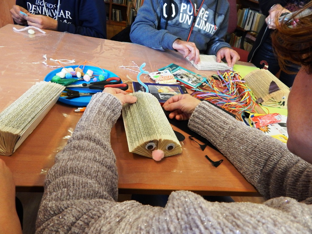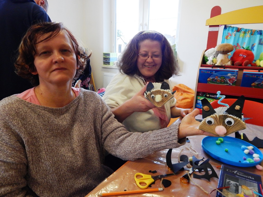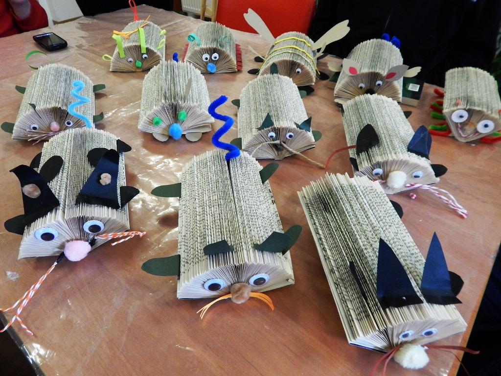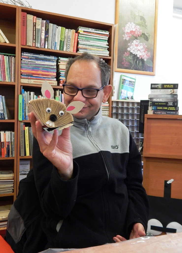 Na zajęciach nie było łatwo, bo trzeba było złożyć równo i dokładnie wszystkie kartki książki. Jednak uczestnicy bardzo dobrze sobie radzili. Inwencja twórcza pokazała, że ze zwykłej książki mogą powstać postacie różnych zwierząt i nie tylko… Jest moc!