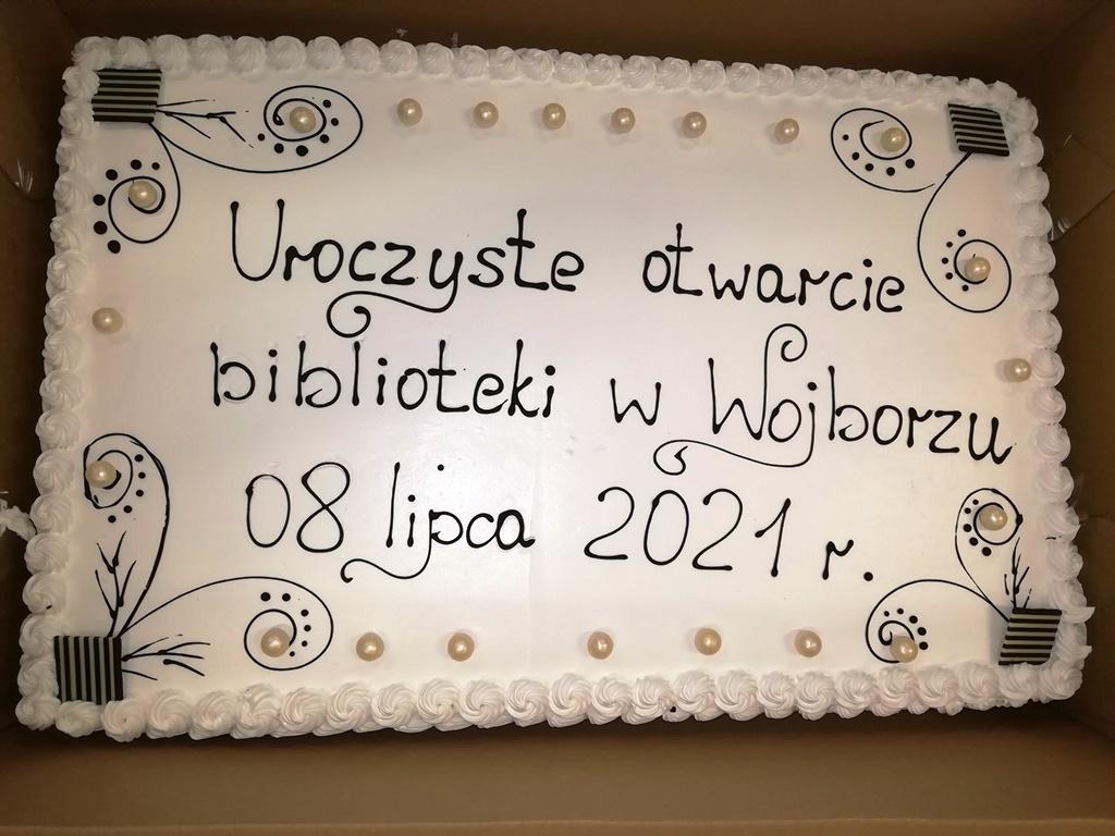 Przygotowany na tę okazję tort ozdobiony złotymi elementami oraz degustacja ciastka promocyjnego „Balladynka – miód malinka” autorstwa Edyty Florczyk - uatrakcyjniły otwarcie Biblioteki zaproszonym gościom, przyjaciołom i mieszkańcom Wojborza.