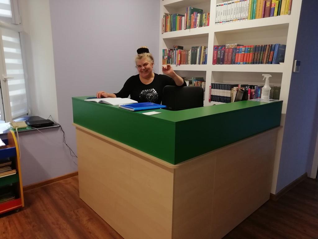 Przeprowadzono zdecydowane zmiany w zakresie organizacji pomieszczeń, jak i samego wizerunku Biblioteki. Już na wejściu do Filii uderza niebieska jasność i czystość żywicznych podłóg oraz ścian estetycznie kontrastujących z wyrazistymi akcentami nowych białych regałów.
