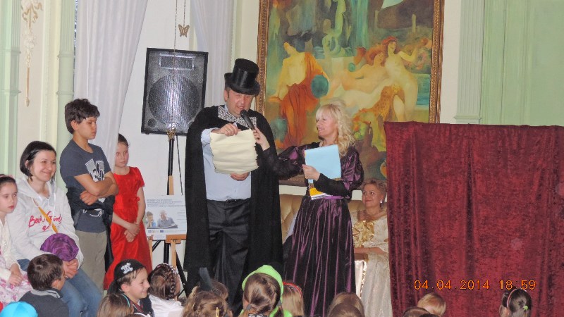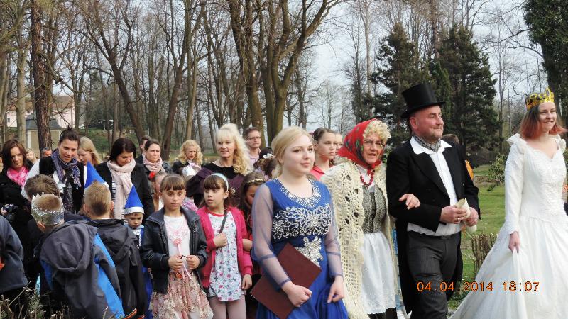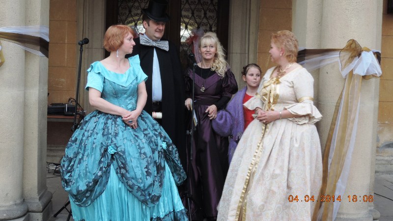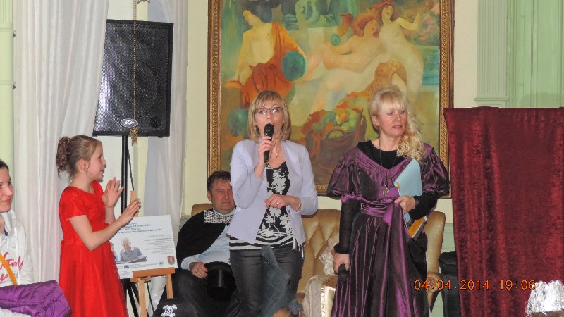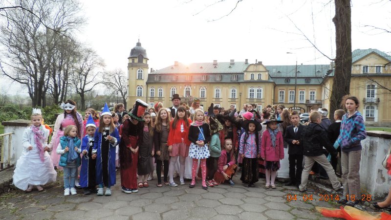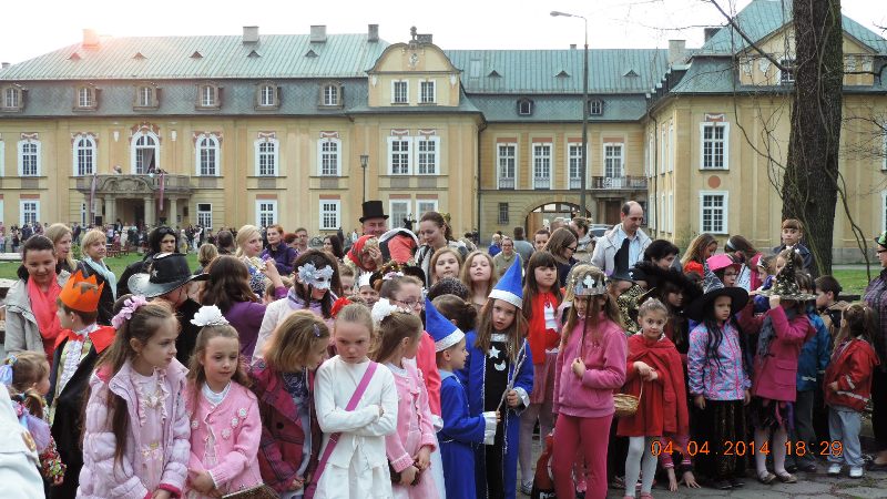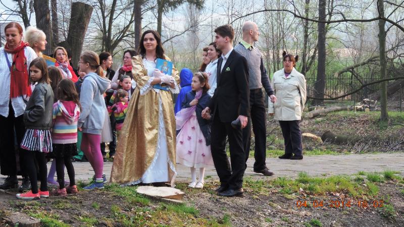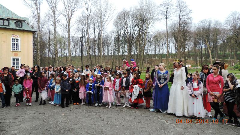 W pałacowej bramie wszystkie dzieci i gości powitali pani Mariola Huzar – dyrektor Biblioteki, w roli księżnej ze starej baśni, pani Bogusława Kochmańska – właścicielka pałacu, w roli hrabiny oraz pan Krzysztof Matysiak – dyrektor OKSiR, w roli Hansa Chrystiana Andersena