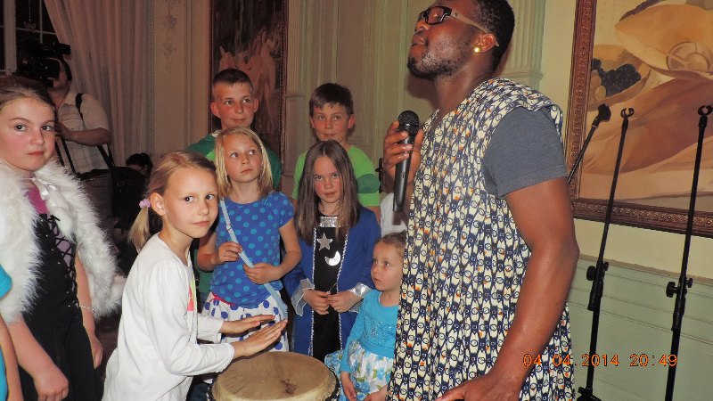Podczas nocy dzieci i goście poznali Benoita Le Gros Azeoduvo, urodzonego w Afryce w Togo. Ma 22 lata, radosny uśmiech na twarzy, figlarną iskrę w oku i wielką życiową pasję – taniec. Jest doskonałym przykładem tego, że swoje pasje można realizować w każdym zakątku świata i jeszcze zarazić nimi innych. W Żelaźnie obdarzył dzieci dawką kultury afrykańskiej: uczył je śpiewać, tańczyć, mówić i rozumieć djembe