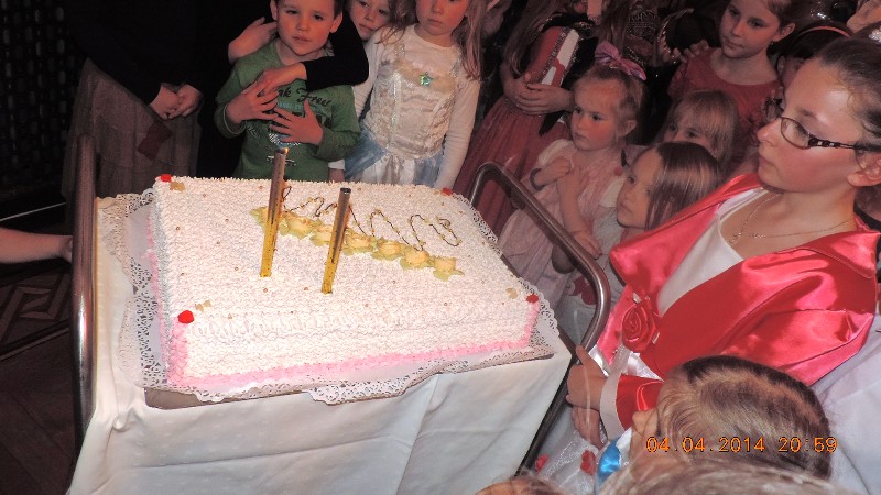 Po takiej dawce aktywności wszystkie dzieci były zmęczone, spragnione i głodne. Udały się na pyszną kolację „Pod wierzbą”. Oczekiwał także smaczny tort, wypieczony i ufundowany specjalnie na Noc z Andersenem przez Piekarnię KAJZERKA w Żelaźnie. Panie Zdzisławie! Bardzo dziękujemy!