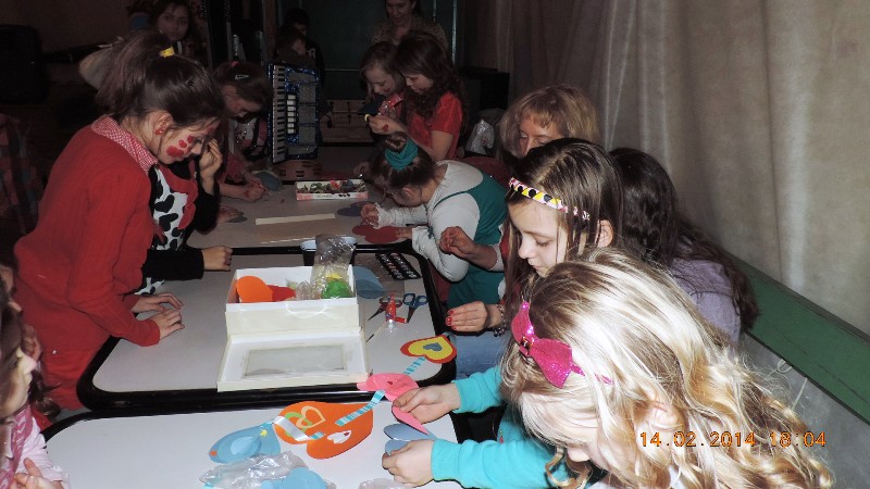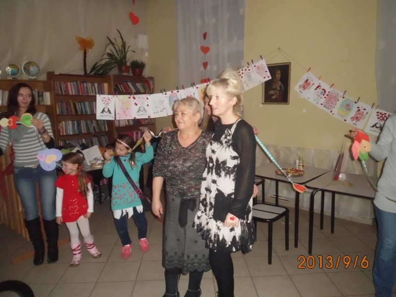 Organizatorzy przygotowali tyle atrakcji, aby każdy rocznik miał coś dla siebie. Pod skrzydłami pani Romy Szczerbień pracowano nad najdłuższym serduszkowym łańcuchem życzeń. Wspierała ją pani Stanisława Wyspiańska-Skawina z biblioteki w Krosnowicach. Atmosfera kolorowego stołu, mieniącego się brokatem i wstążkami, ściągnęła prawie całą najmłodszą publiczność. Łańcuch jest teraz pamiątkową dekoracją w miejscowym punkcie bibliotecznym, który obsługuje pani Grażyna Stercel.