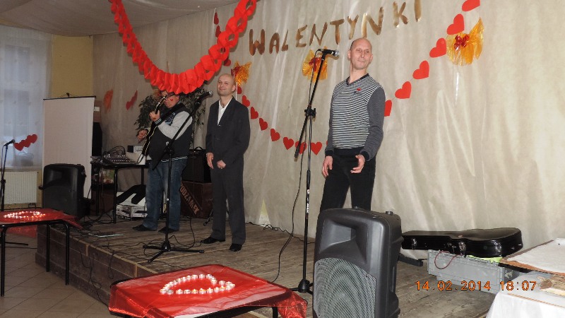 A jak było? Walentynki rozpoczął z przytupem zespół Podzamek Boys w składzie Andrzej Walczak, Janek Wiśniewski i Tadeusz Kiejrys. Chłopcy porwali wszystkich do świata rytmicznej muzyki, miłości i dobrych uczuć. Nie mogło być inaczej, dzieci szalały do utraty tchu z dyrektorem Biblioteki Publicznej Gminy Kłodzko panią Mariolą Huzar.