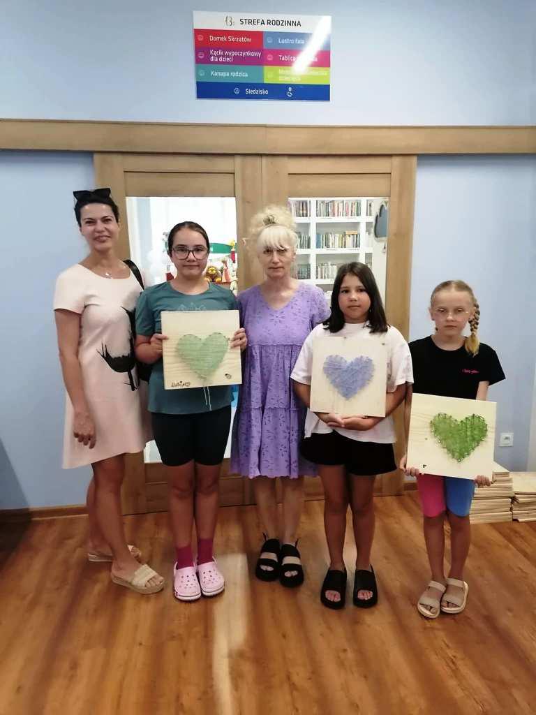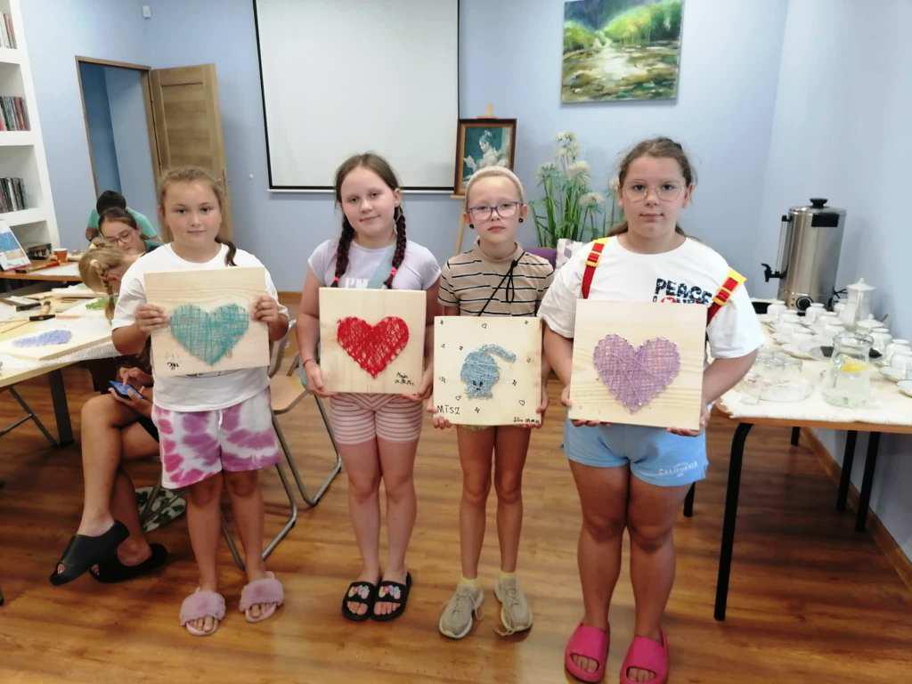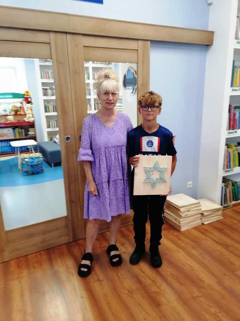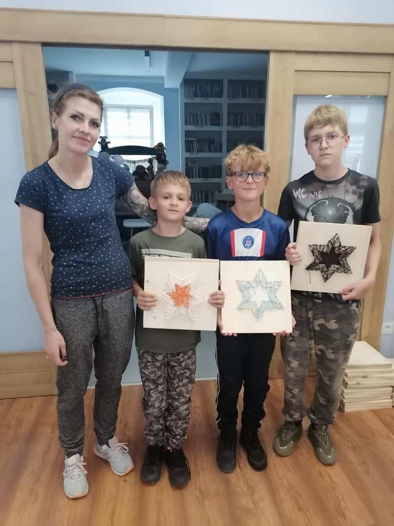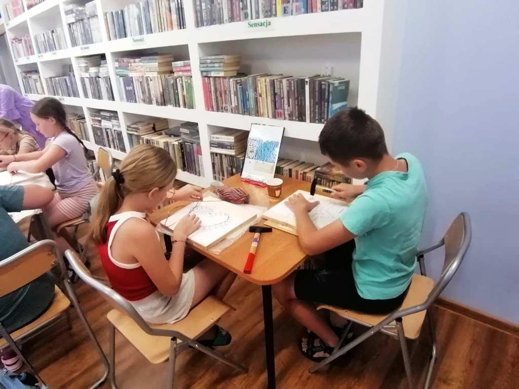 W tych działaniach wspierała uczestników Mariola Huzar – dyrektorka Biblioteki. Podczas warsztatów mieli oni okazję stworzyć własne dzieła – od prostych serduszek i gwiazdek po bardziej skomplikowane wzory, takie jak zwierzęta czy napisy. Każdy projekt był wyjątkowy, bo powstawał z indywidualnego pomysłu i w ulubionej kolorystyce. Instruktorka krok po kroku tłumaczyła technikę, a atmosfera sprzyjała kreatywności i wymianie pomysłów.
