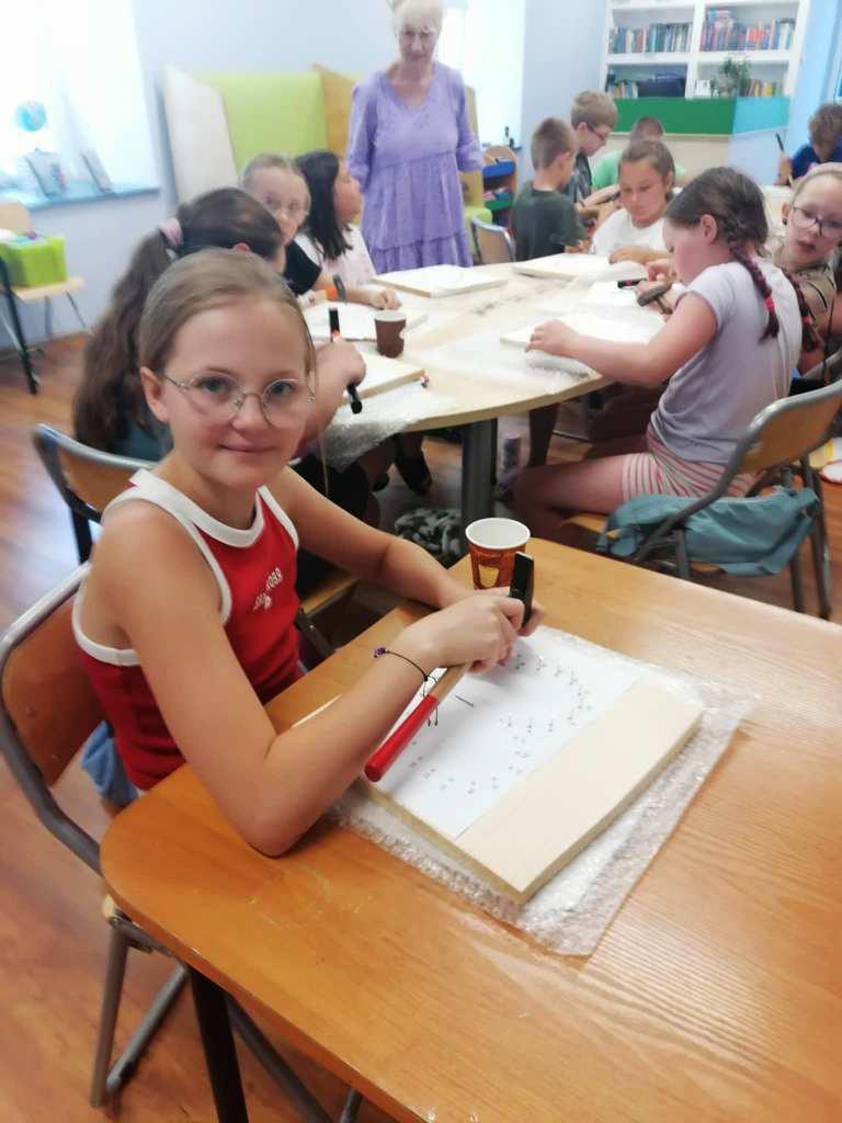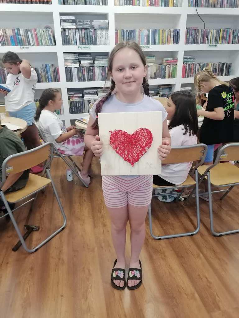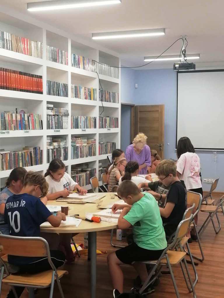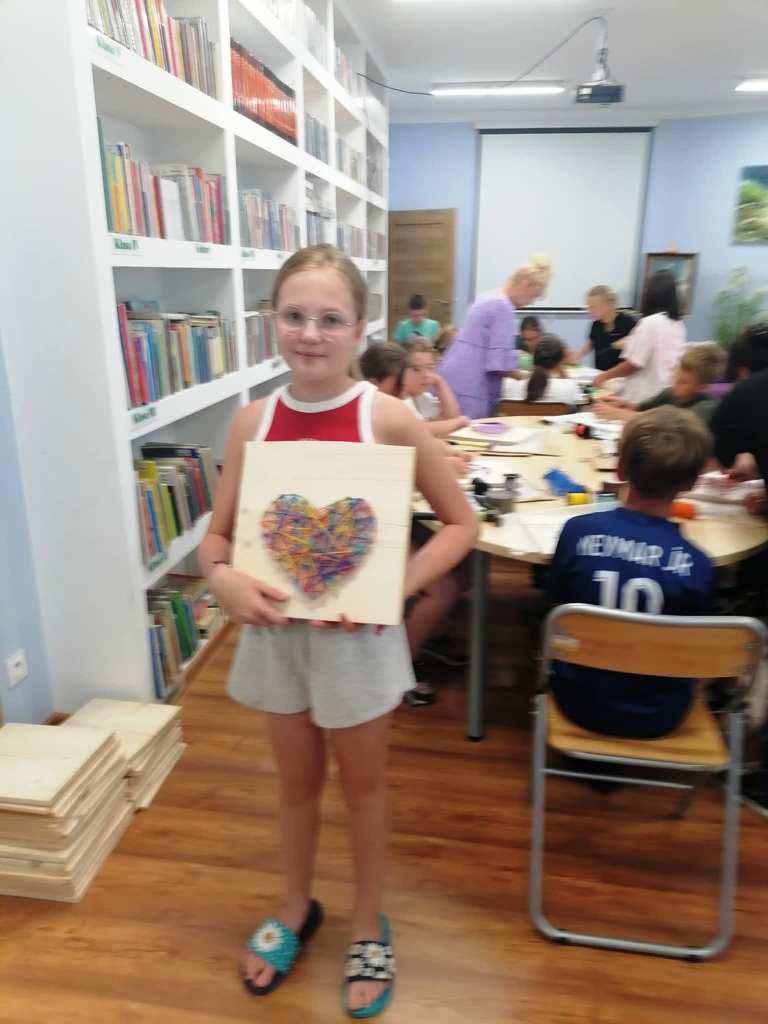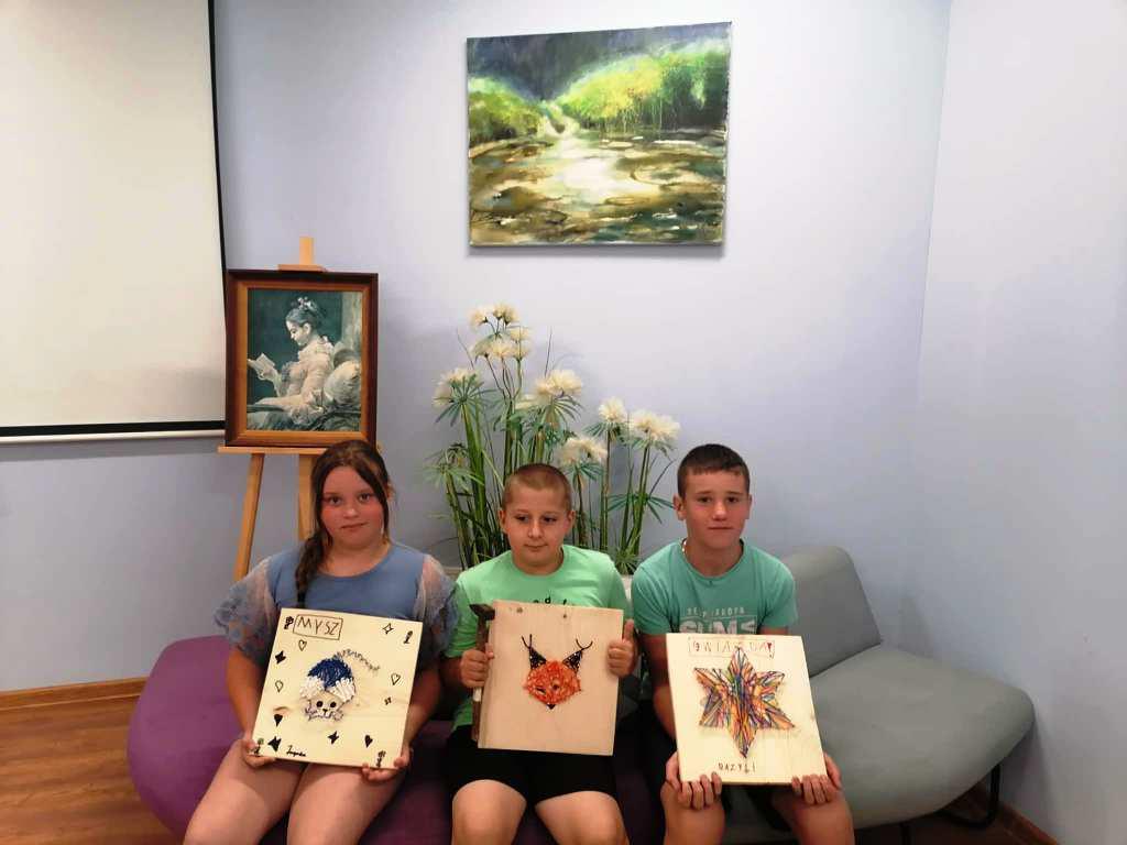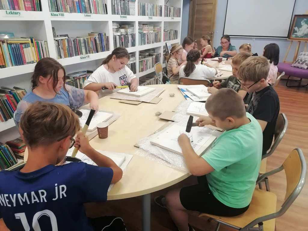 W tych działaniach wspierała uczestników Mariola Huzar – dyrektorka Biblioteki. Podczas warsztatów mieli oni okazję stworzyć własne dzieła – od prostych serduszek i gwiazdek po bardziej skomplikowane wzory, takie jak zwierzęta czy napisy. Każdy projekt był wyjątkowy, bo powstawał z indywidualnego pomysłu i w ulubionej kolorystyce. Instruktorka krok po kroku tłumaczyła technikę, a atmosfera sprzyjała kreatywności i wymianie pomysłów.