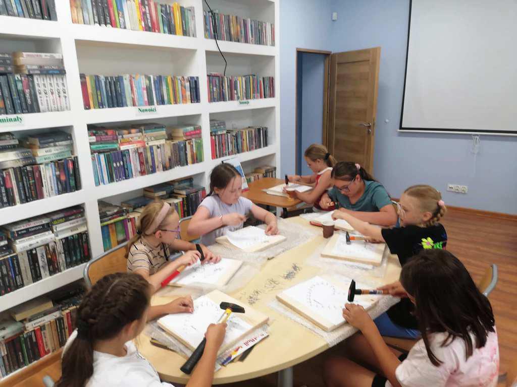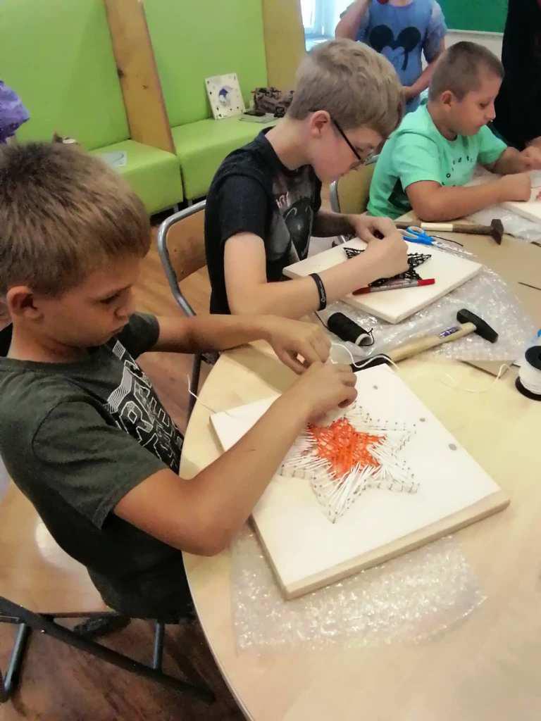 Filia Biblioteki Publicznej Gminy Kłodzko w Wojborzu zamieniła się w pracownię artystyczną, gdzie zamiast pędzli i farb królowały młotki, gwoździe i kolorowe nici. Wszystko za sprawą warsztatów string art – techniki tworzenia obrazów przy pomocy nici napinanych na wbitych w deskę gwoździach. Zajęcia przyciągnęły zarówno młodszych, jak i starszych miłośników rękodzieła, którzy z zapałem odkrywali uroki tej niecodziennej formy sztuki.