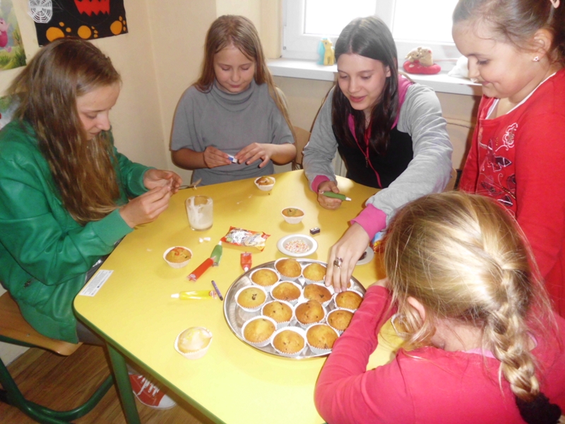 12 maja w bibliotece w Wojciechowicach był obchodzony jako Dzień Europy. Czytelnicy odśpiewali hymn Unii Europejskiej, czyli „Odę do radości”, bo przecież „Hymn Unii Europejskiej niejedna gościła scena – to Oda do radości Ludwika Van Beethovena”. Dzielili się wiedzą o poszczególnych krajach Unii i jej symbolach. Szukali stolic w atlasie świata – na czas. Improwizowali postacie Syriusza – maskotki Unii dla najmłodszych, bo przecież sympatyczna stonoga w każdym kraju występuje ubrana w swoje barwy narodowe. Podsumowaniem tego dnia był quiz oraz wspólne rozwiązywanie krzyżówki z hasłem „Polska w Unii”. Także dekorowanie słodkich babeczek. Miał zabłysnąć napis Unia Europejska, ale w natłoku emocji, ozdoby pogubiły swoje literki… Wasz bibliotekarz Izabela Mucha