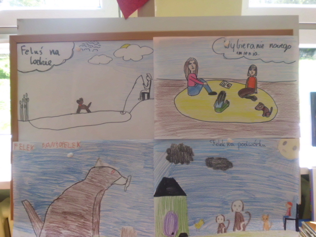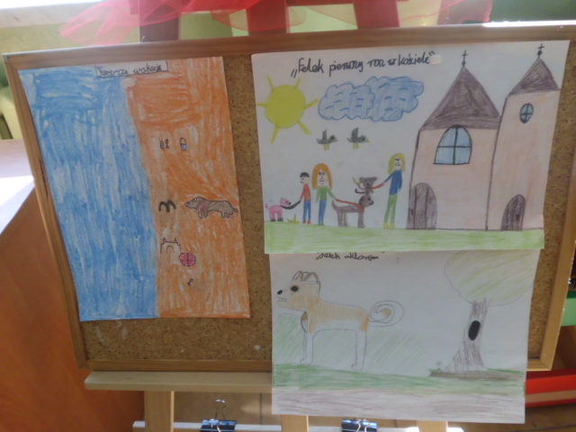 W tym tygodniu odbyły się również zajęcia plastyczne. Dzieci z miejscowej szkoły stworzyły piękne prace, czyli głównego bohatera z książki „Pamiętnik Felka Parerasa” Ewy Chotomskiej. Książka opowiada o życiu i przygodach szczęśliwego psa Felka Parerasa. Wystawa z rysunkami dostępna jest w bibliotece w Żelaźnie.