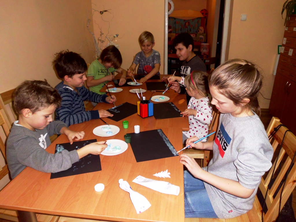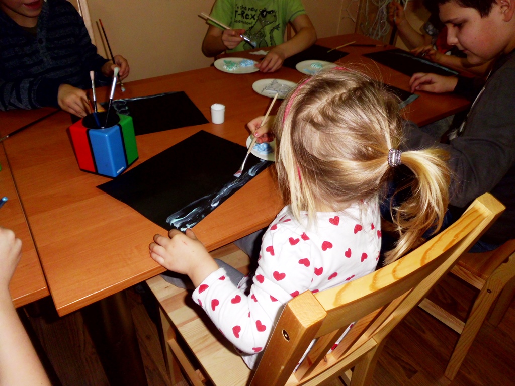 Filia Biblioteki Publicznej Gminy Kłodzko w Wojciechowicach, zorganizowała dla młodych czytelników „malowanie na czarnym kartonie pastą do zębów”.