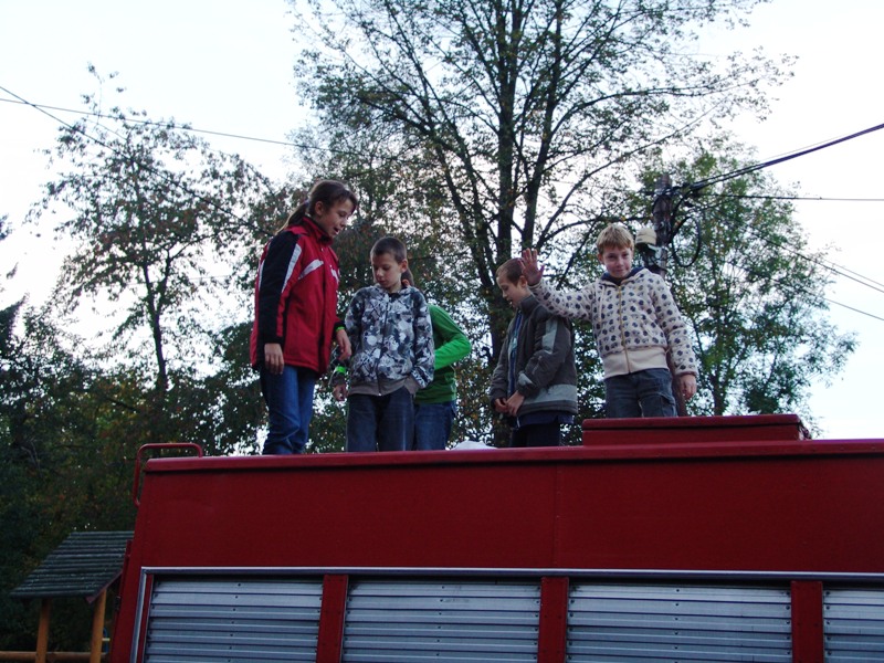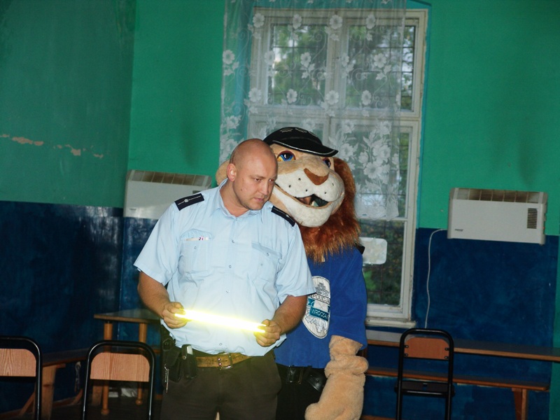 Milusińscy otrzymali odblaskowe opaski na rękę, ufundowane przez Urząd Marszałkowski Województwa Dolnośląskiego. Po dzielnicowym do akcji edukacyjnej na tematy p.poż. i rażenia prądem, przystąpił komendant Marcin Olejnik z PPSP w Kłodzku. Dzieciaczki nie tylko słuchały, ale także czynnie uczestniczyły w zajęciach, bo kto jak kto, ale komendant Marcin potrafi uczynić ciekawą „zadymę”. Na „sygnale” odbyły się też zajęcia z pierwszej pomocy. Ratownik medyczny Piotr Nieckarz ze stoickim spokojem wykładał kawę na ławę. Kręcił się tu również odjazdowy rowerzysta Filip, który rozprawiał o tym, jak rozpoczęła się jego przygoda z rowerem. Dziś na trasach Polski i nie tylko ma w tym temacie wiele do powiedzenia. Nad bezpieczeństwem czuwał Komisarz Lew\Bartek Bloch, a wspierała go tutejsza bibliotekarska Dorota Bilska.
