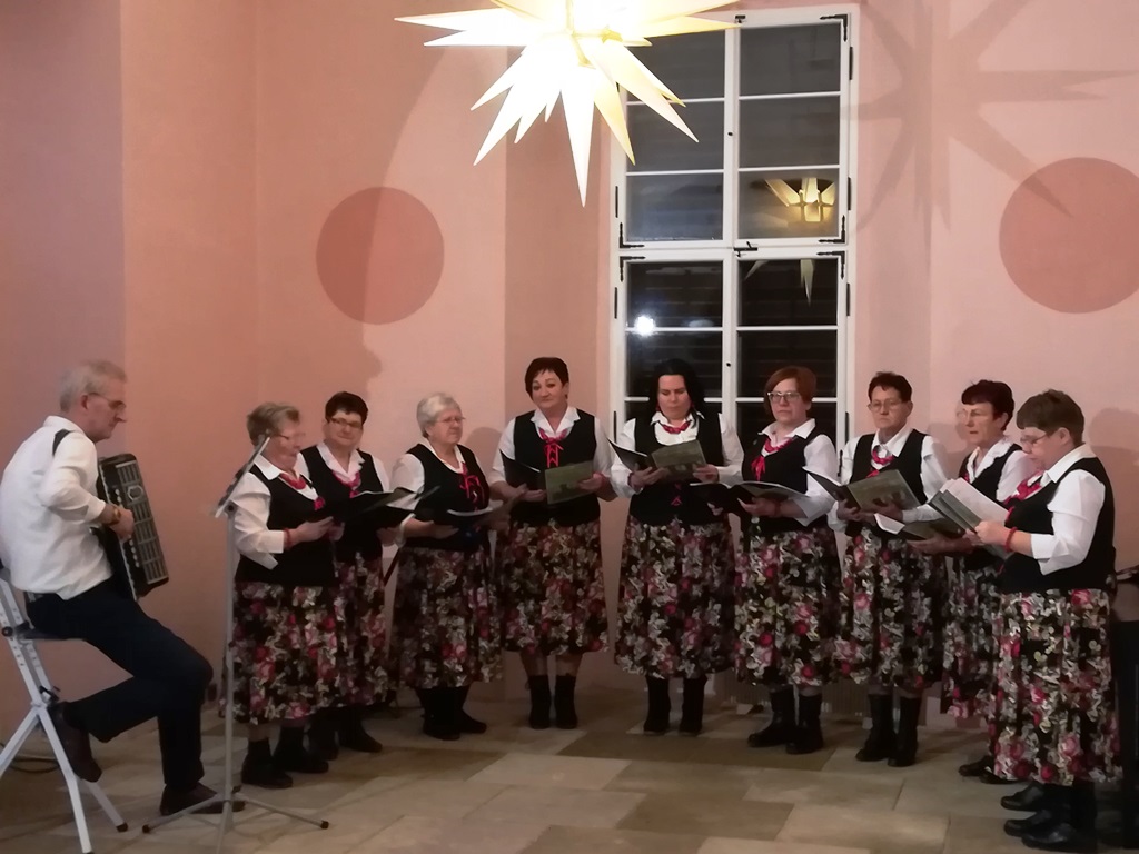 - Potem udaliśmy się na miejscowy Zamek, gdzie Słowianki zaprezentowały się podczas otwarcia Międzynarodowej Wystawy Szopek Bożonarodzeniowych. Zespołowi akompaniował pan Andrzej Saczyna. Atmosfera bardzo świąteczna – podkreśla Mariola Huzar, dyrektor Biblioteki Publicznej Gminy Kłodzko, organizator wyjazdu.