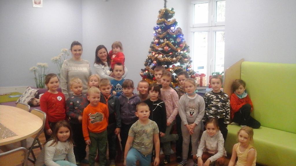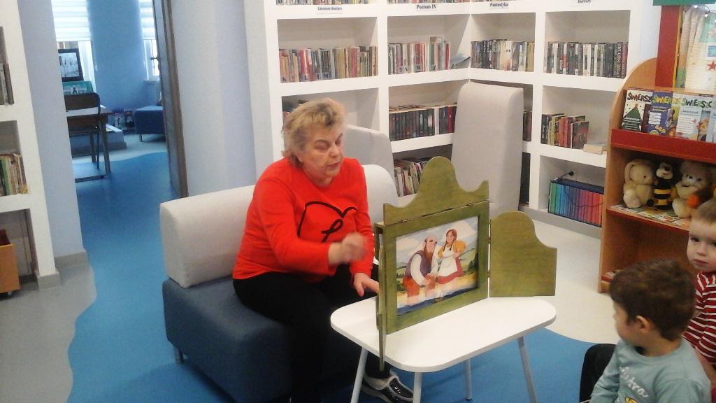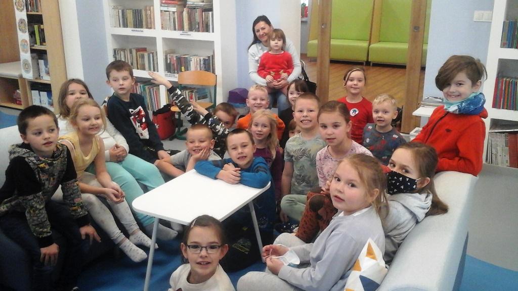 Uczestnicy spotkania z miejscowej Szkoły Podstawowej z dużym zainteresowaniem obserwowali to, co zaprezentowała pani bibliotekarka Małgosia.