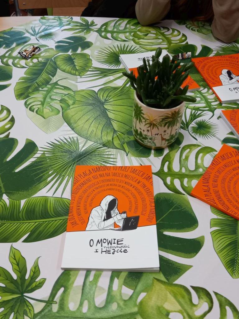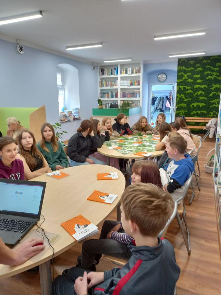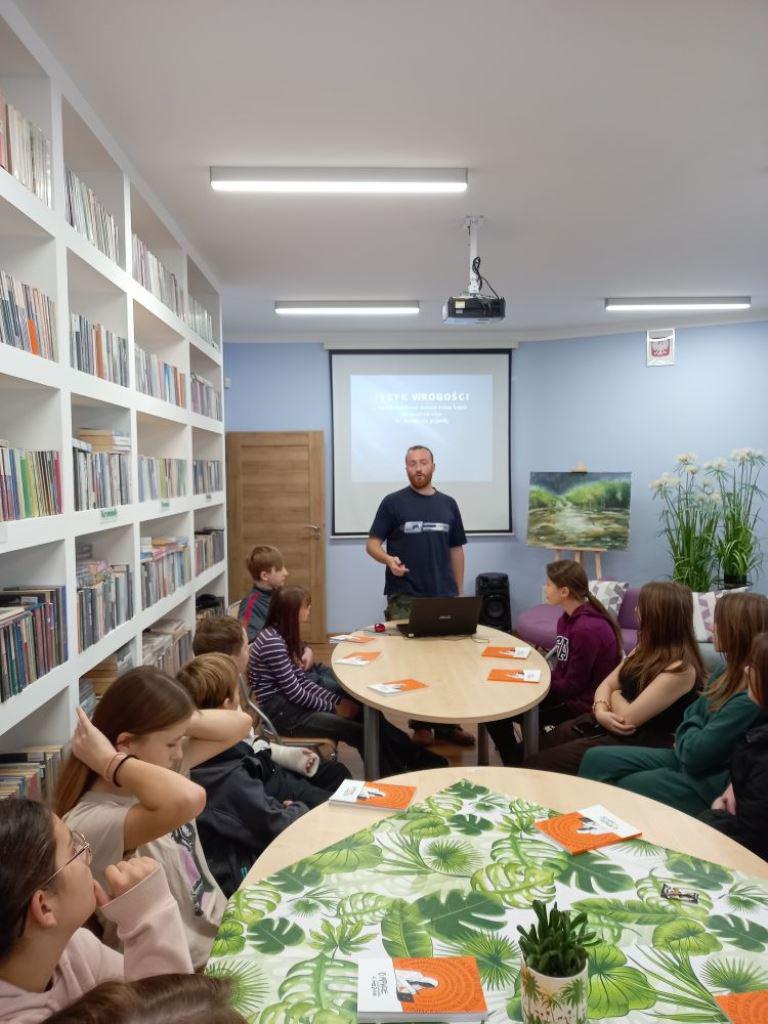 Podczas zajęć, młodzież korzystała z bardzo interesujących książek aktywnościowych, które Biblioteka otrzymała w ramach udziału w ogólnopolskiej akcji skierowanej do bibliotek -„O mowie nienawiści i hejcie”.