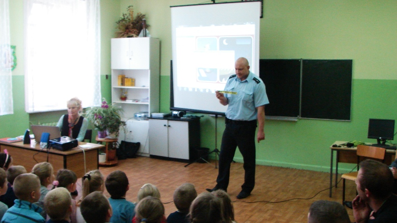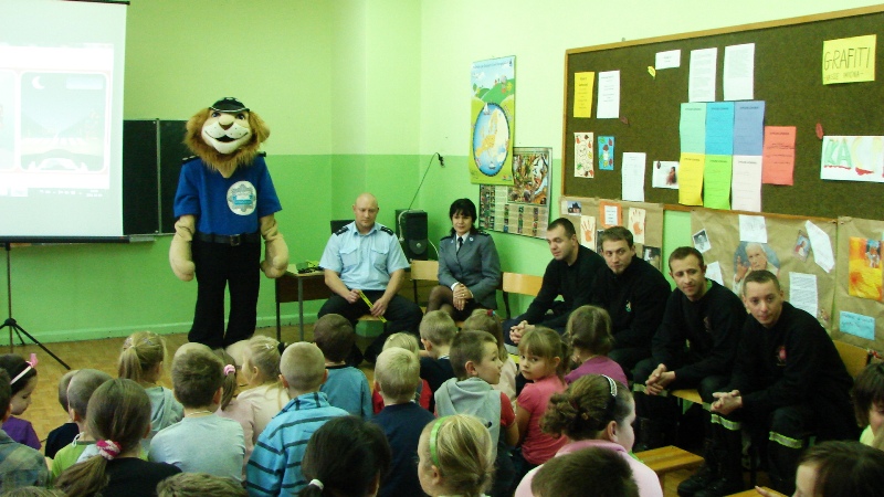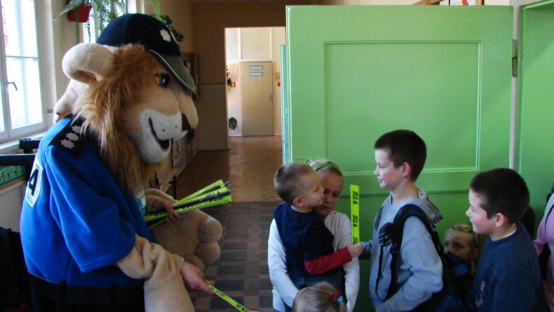 Edukacja najmłodszych w tych tematach jest niezwykle istotna, może im niejednokrotnie uratować życie, bądź uchronić przed kalectwem. Uświadamianie dzieciom zagrożeń, jakie mogą je spotkać, zwiększa ich świadomość na temat tego, jak odpowiednio zachowywać się na drodze i jak być na niej widocznym – pouczał dzielnicowy Emil Kowalski. Komisarz Lew także był na posterunku, wszystkim uczniom rozdał odblaski do stosowania na co dzień. W tę rolę tym razem wcielił się stażysta Oskar Szopa.