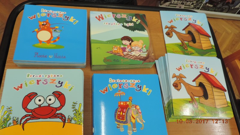 Kolejna propozycja, która zwróciła uwagę młodych czytelników to "Wiersze w pionie", które można wykorzystywać do edukacji zarówno w szkole, domu, jak i w przedszkolu. Starannie opracowany wybór wierszy zachęca do słuchania i prób samodzielnego czytania, jak widać na załączonych obrazkach.