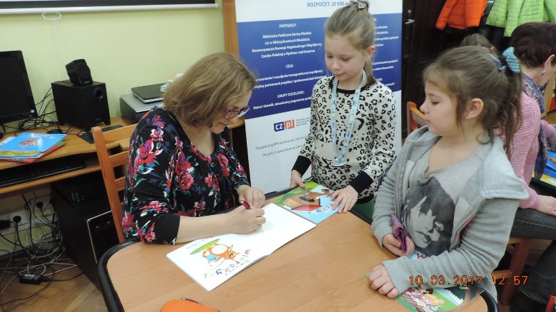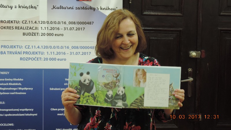 Spotkanie autorskie realizowane było w ramach mikroprojektu Biblioteki Publicznej Gminy Kłodzko „Przystanki kultury z książką”, który jest współfinansowany ze środków Europejskiego Funduszu Rozwoju Regionalnego oraz budżetu państwa za pośrednictwem Euroregionu Glacensis