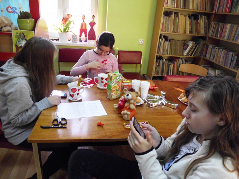 W bibliotece w Szalejowie Górnym dziewczęta poświęciły swój czas na walentynkowy makijaż, bądź telefon do kogoś ulubionego, a chłopcy zdecydowanie stawiali na spotkanie z ulubioną książką. Tak też można!